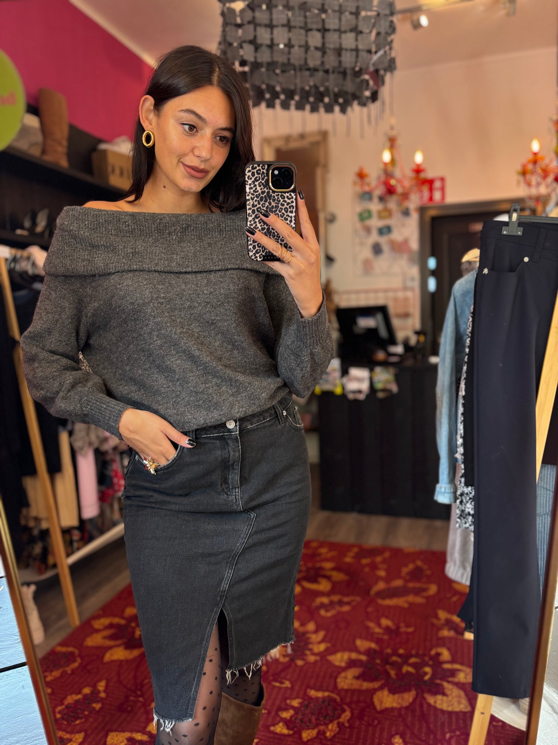 Dominique is 173 cm lang en draagt verschillende maten op de foto’s.