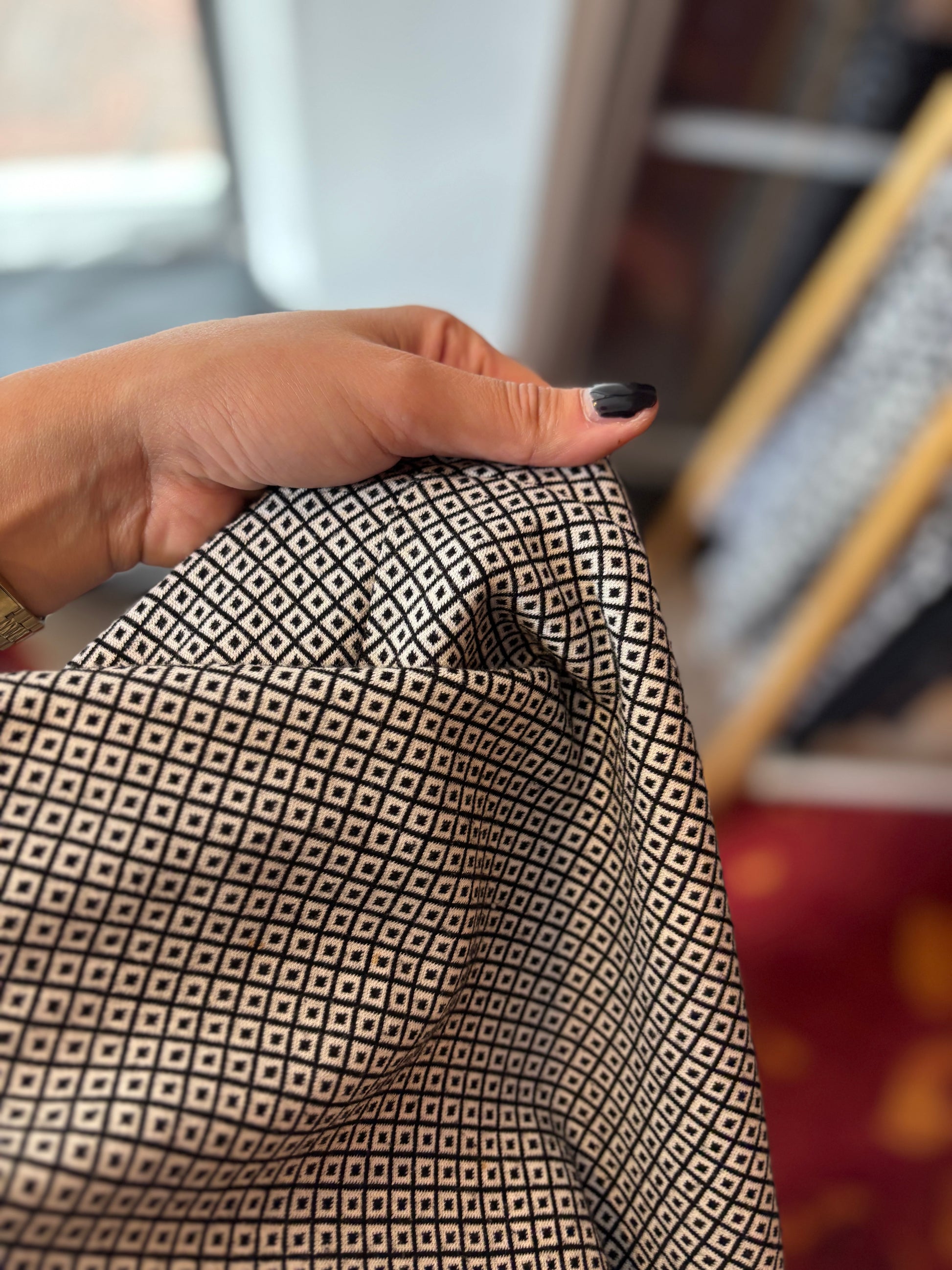 Bij elk product staat de maat duidelijk vermeld. Dit is de exacte maat zoals aangegeven op het label. Om een zo goed mogelijk beeld van de pasvorm te geven, gebruikt Dominique soms clips om de kleding mooi passend te maken voor de foto’s.