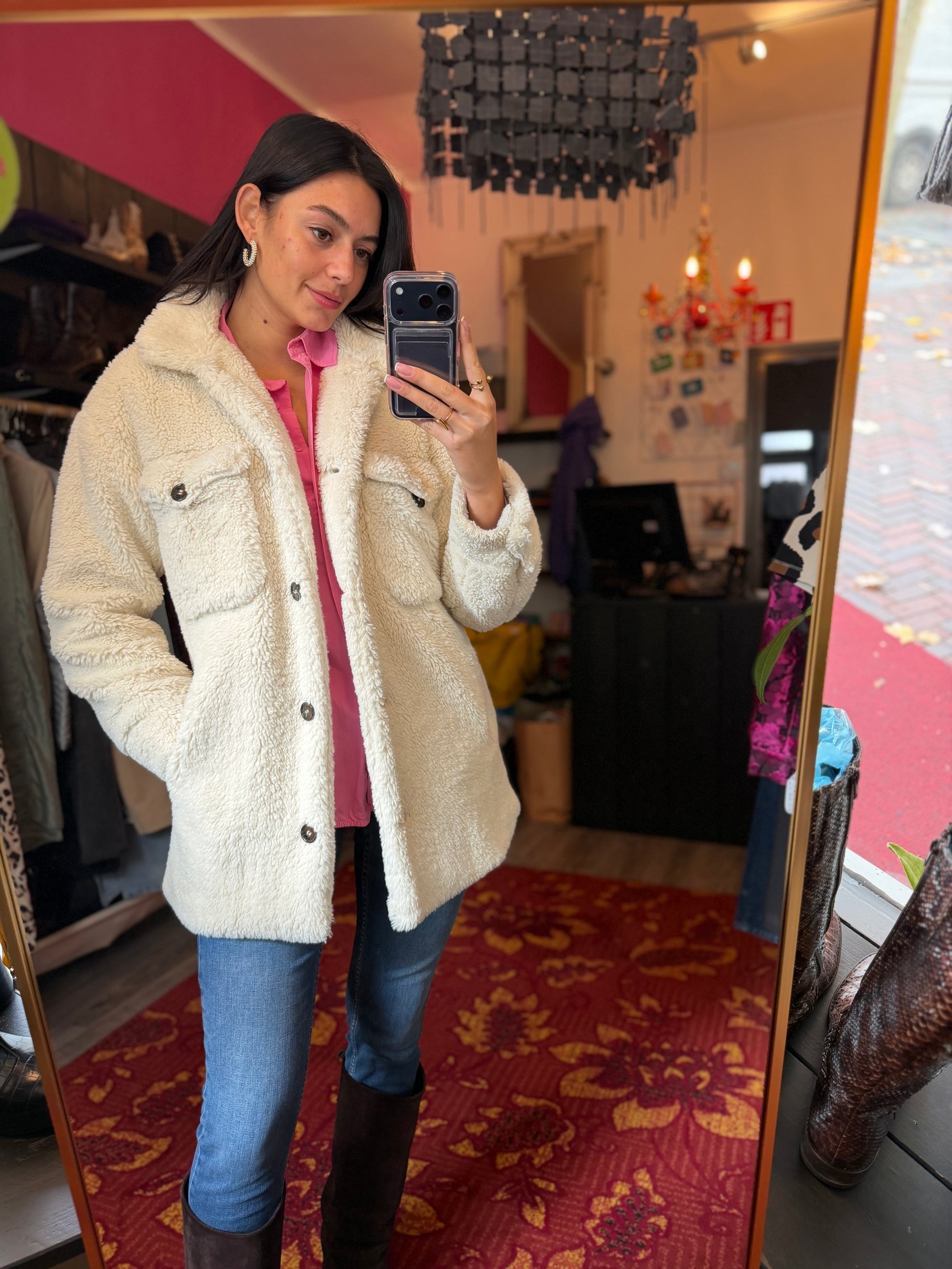 Bij elk product staat de maat duidelijk vermeld. Dit is de exacte maat zoals aangegeven op het label. Om een zo goed mogelijk beeld van de pasvorm te geven, gebruikt Dominique soms clips om de kleding mooi passend te maken voor de foto’s.