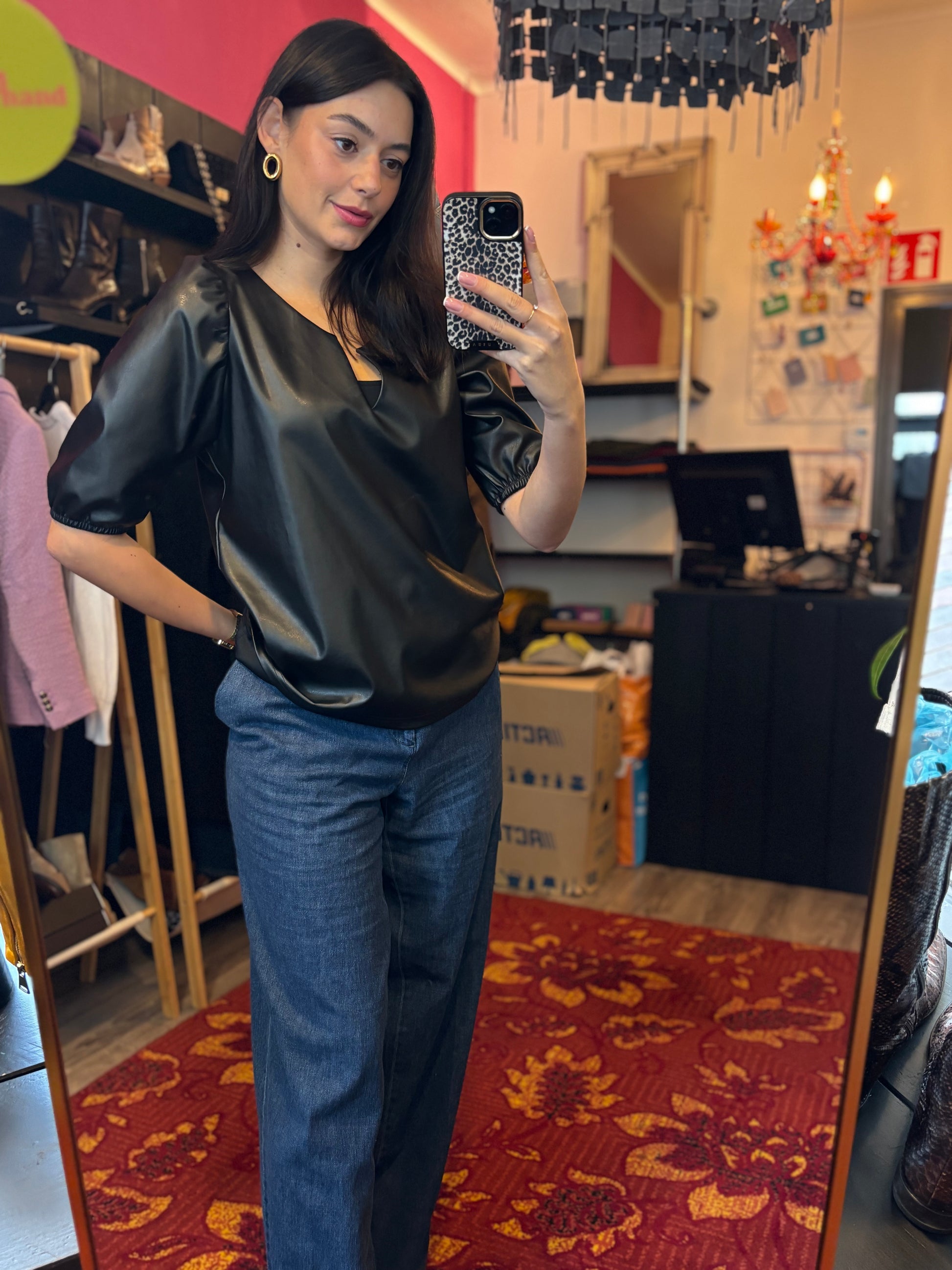 Dominique is 173 cm lang en draagt verschillende maten op de foto’s.