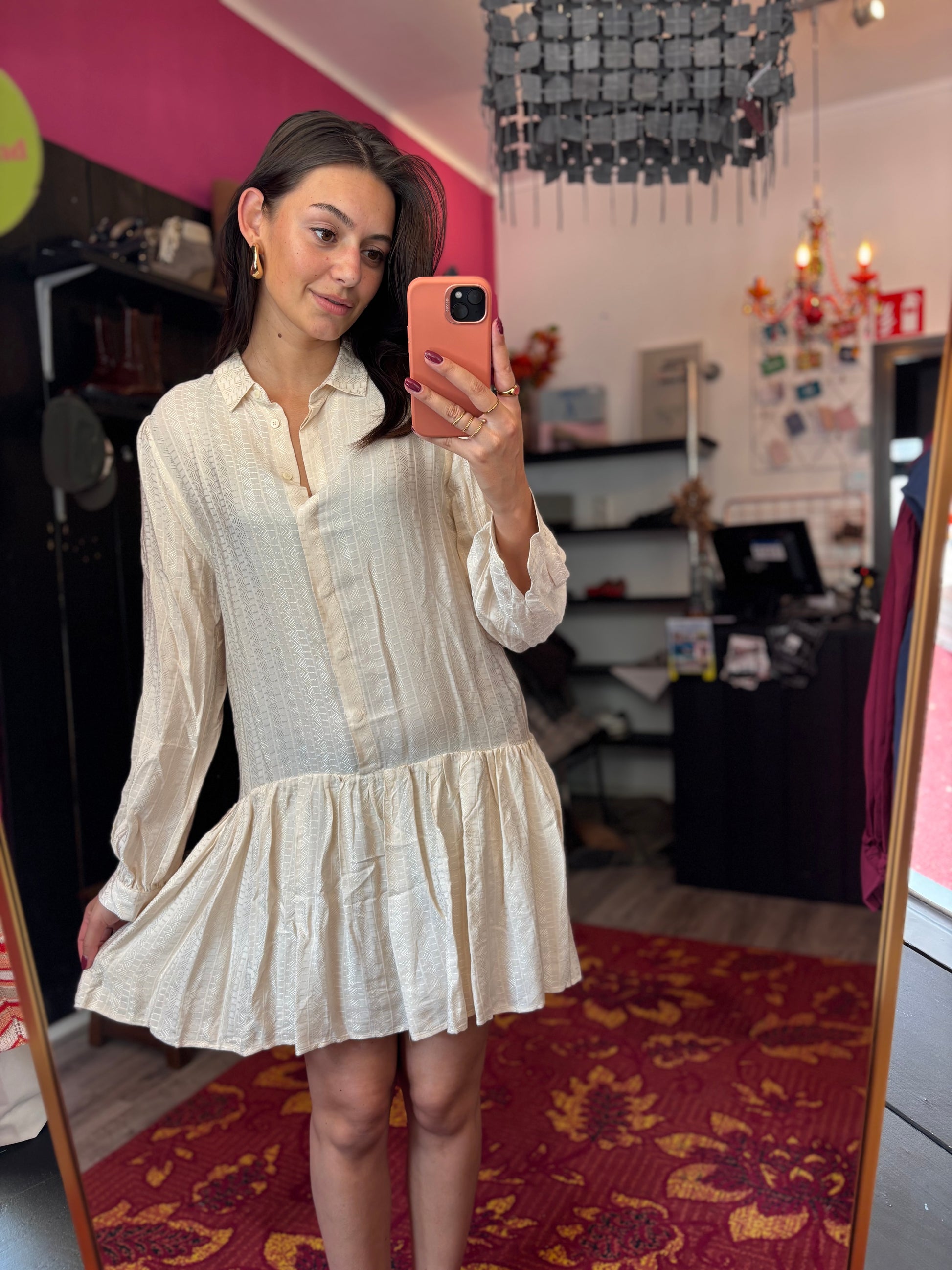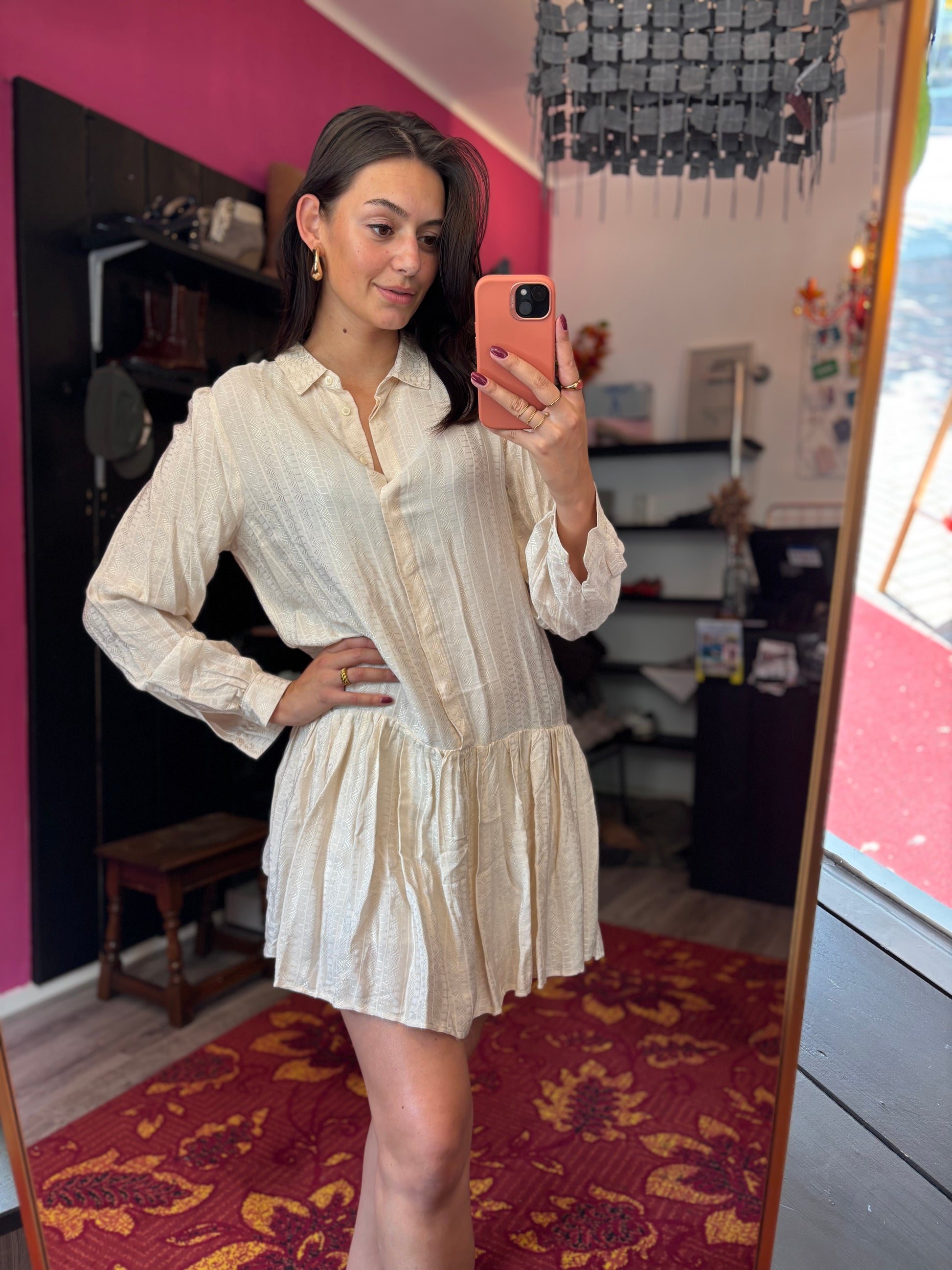 Bij elk product staat de maat duidelijk vermeld. Dit is de exacte maat zoals aangegeven op het label. Om een zo goed mogelijk beeld van de pasvorm te geven, gebruikt Dominique soms clips om de kleding mooi passend te maken voor de foto’s.
