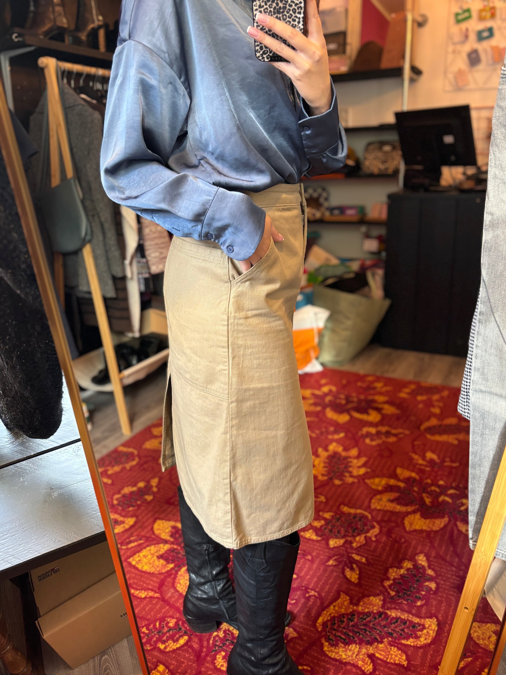 Bij elk product staat de maat duidelijk vermeld. Dit is de exacte maat zoals aangegeven op het label. Om een zo goed mogelijk beeld van de pasvorm te geven, gebruikt Dominique soms clips om de kleding mooi passend te maken voor de foto’s.