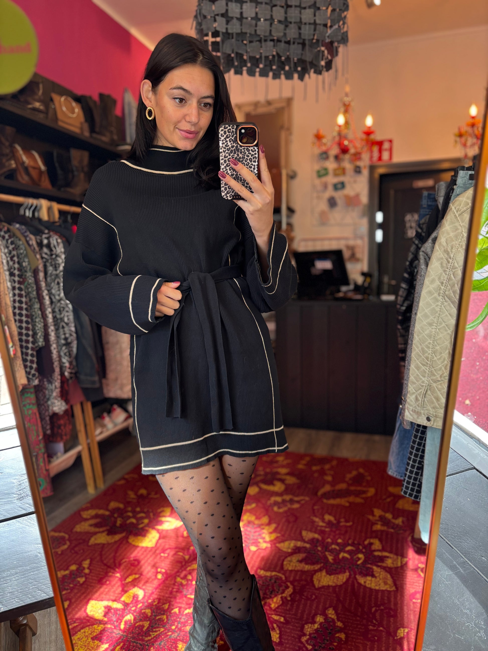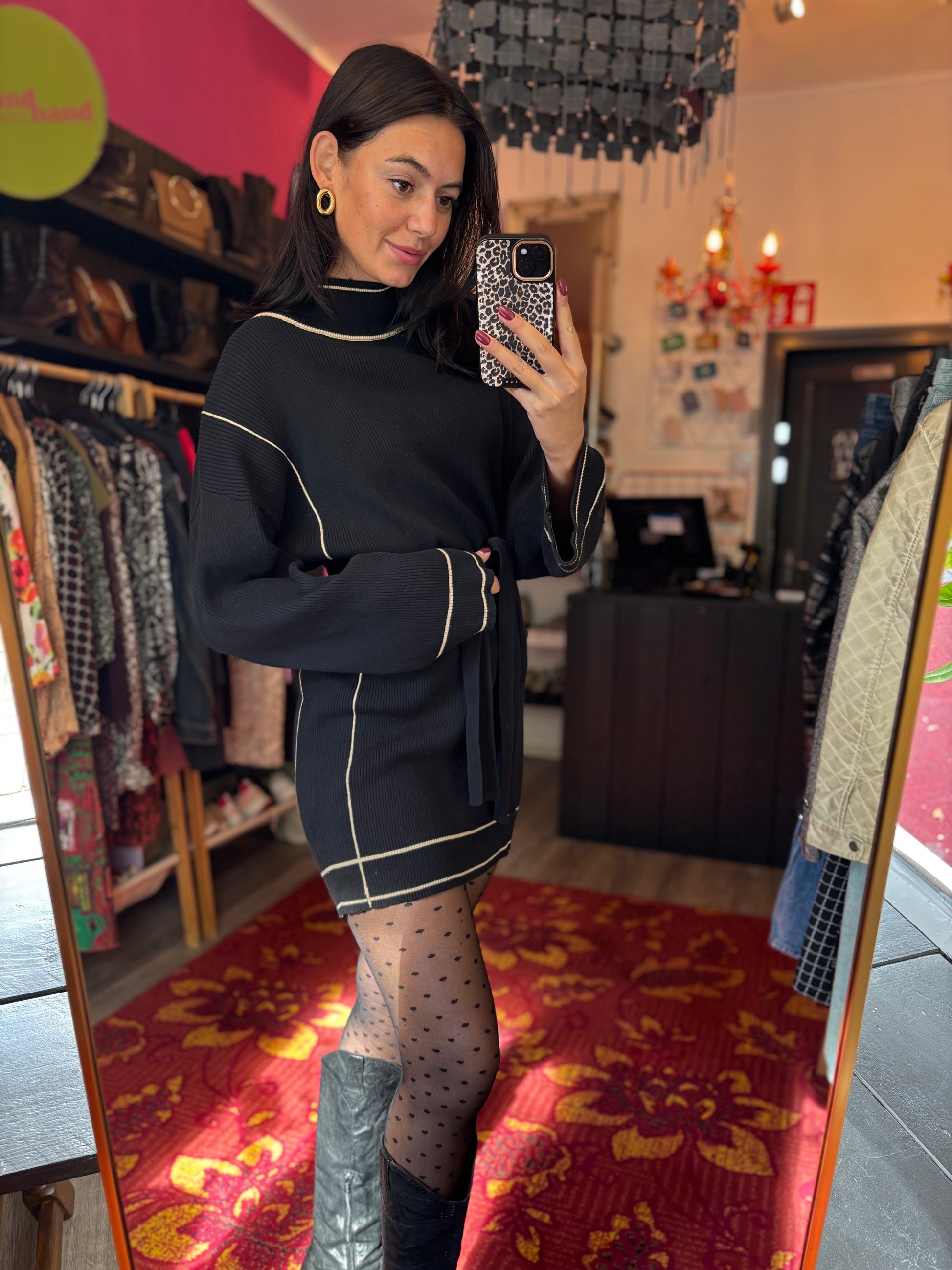 Dominique is 173 cm lang en draagt verschillende maten op de foto’s.