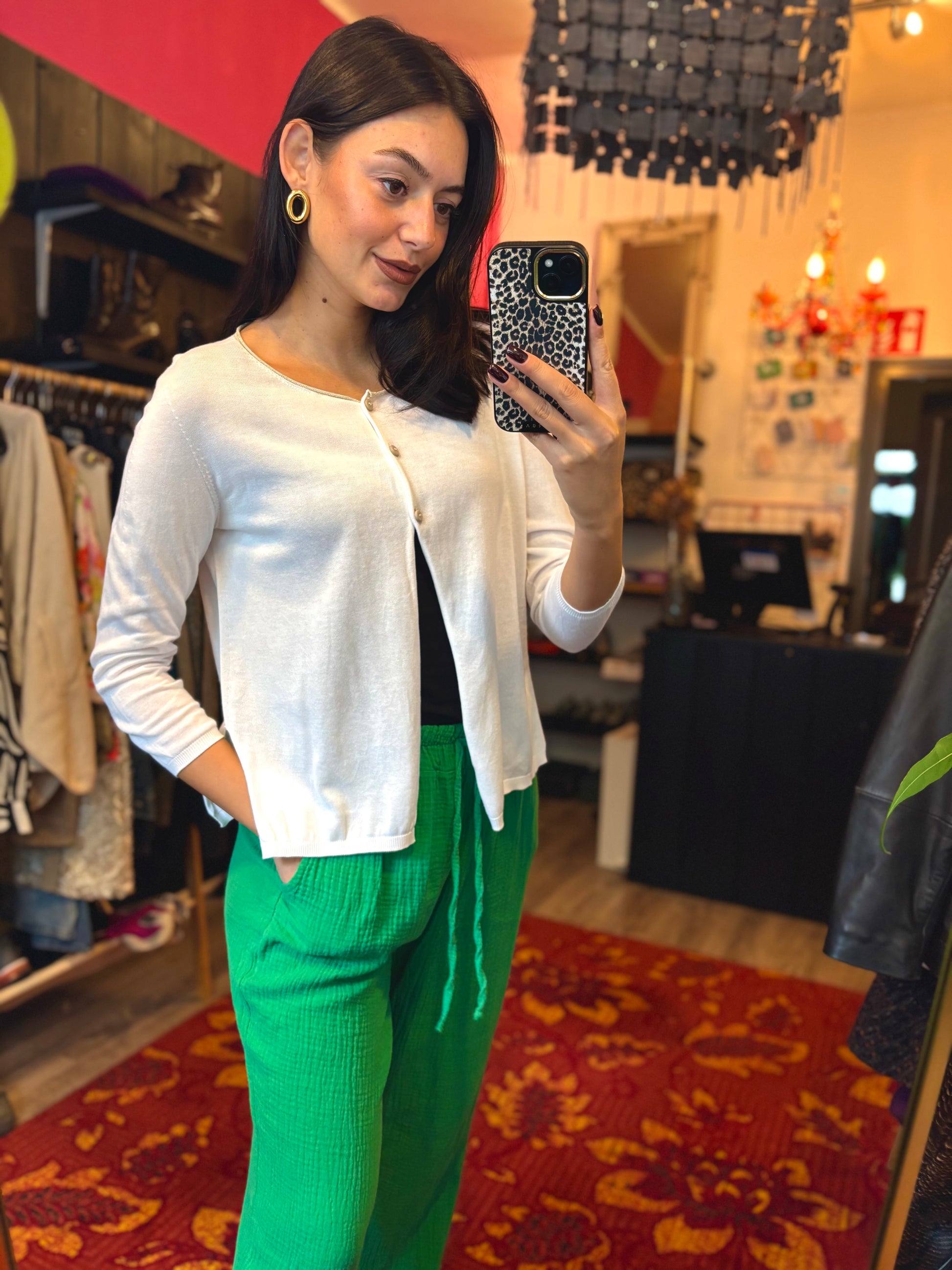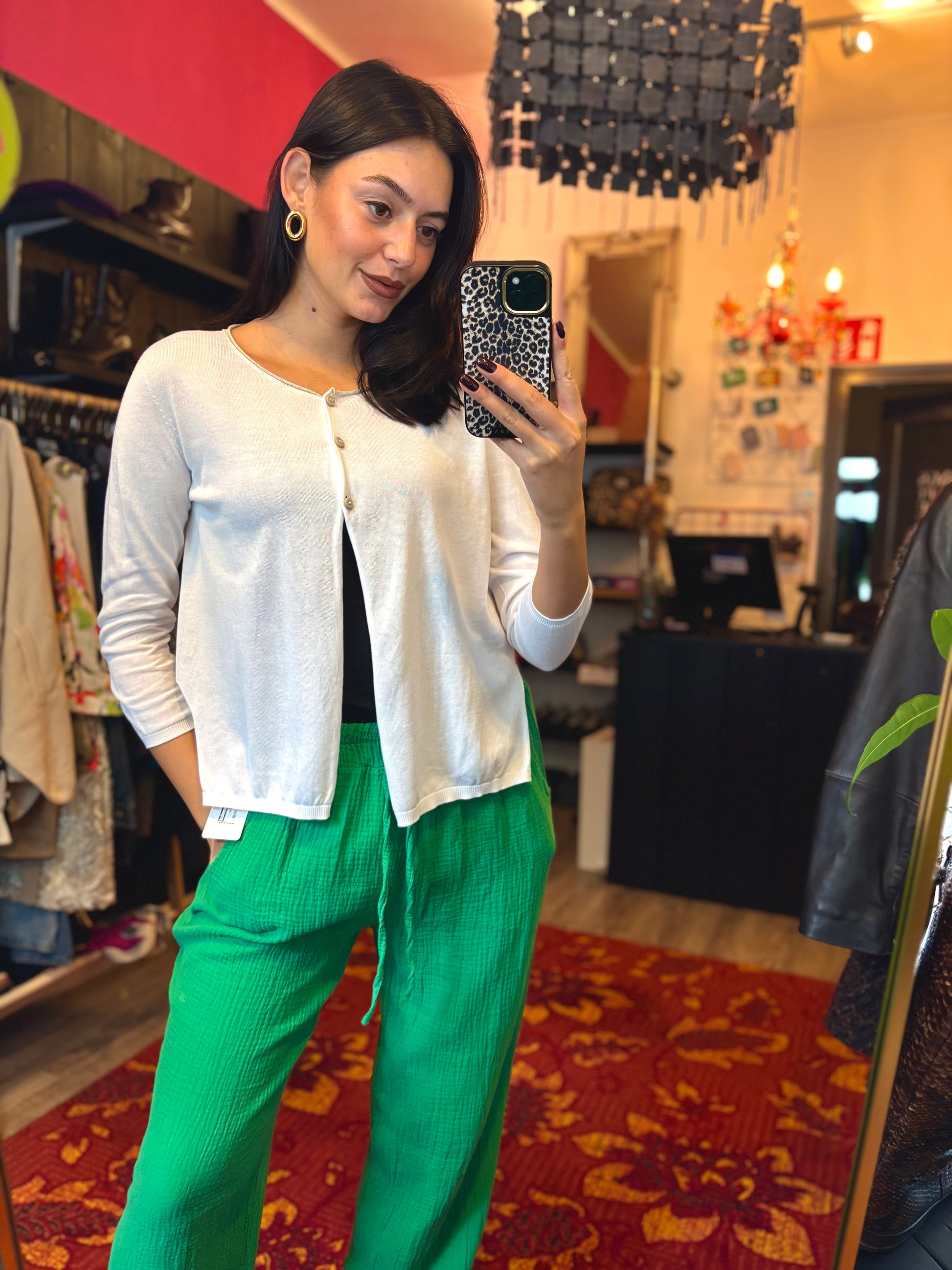 Bij elk product staat de maat duidelijk vermeld. Dit is de exacte maat zoals aangegeven op het label. Om een zo goed mogelijk beeld van de pasvorm te geven, gebruikt Dominique soms clips om de kleding mooi passend te maken voor de foto’s.