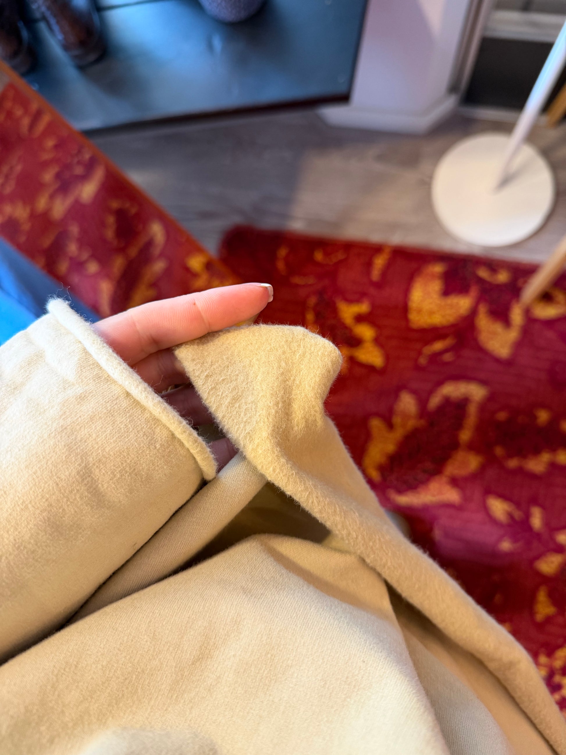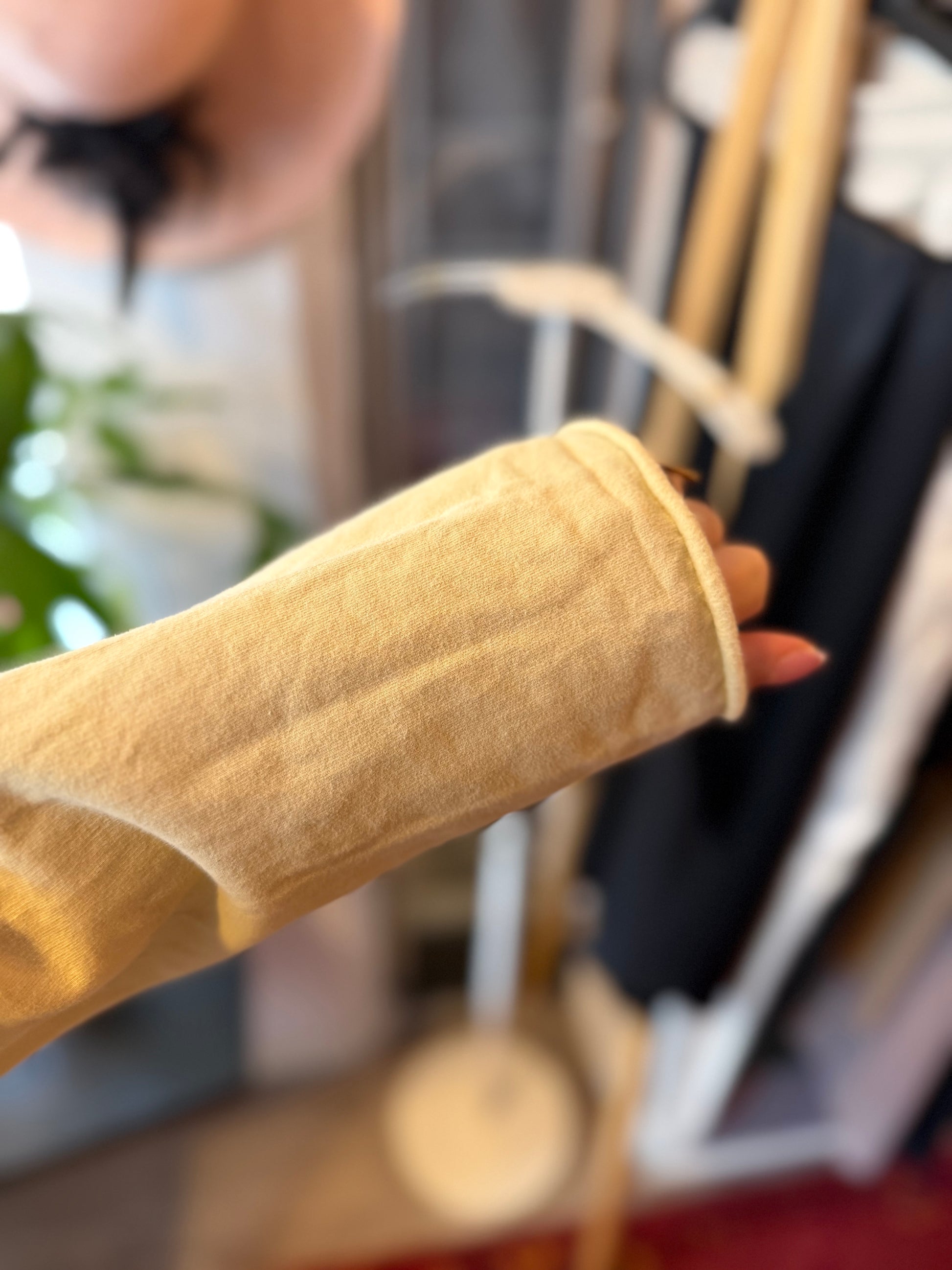 Bij elk product staat de maat duidelijk vermeld. Dit is de exacte maat zoals aangegeven op het label. Om een zo goed mogelijk beeld van de pasvorm te geven, gebruikt Dominique soms clips om de kleding mooi passend te maken voor de foto’s.