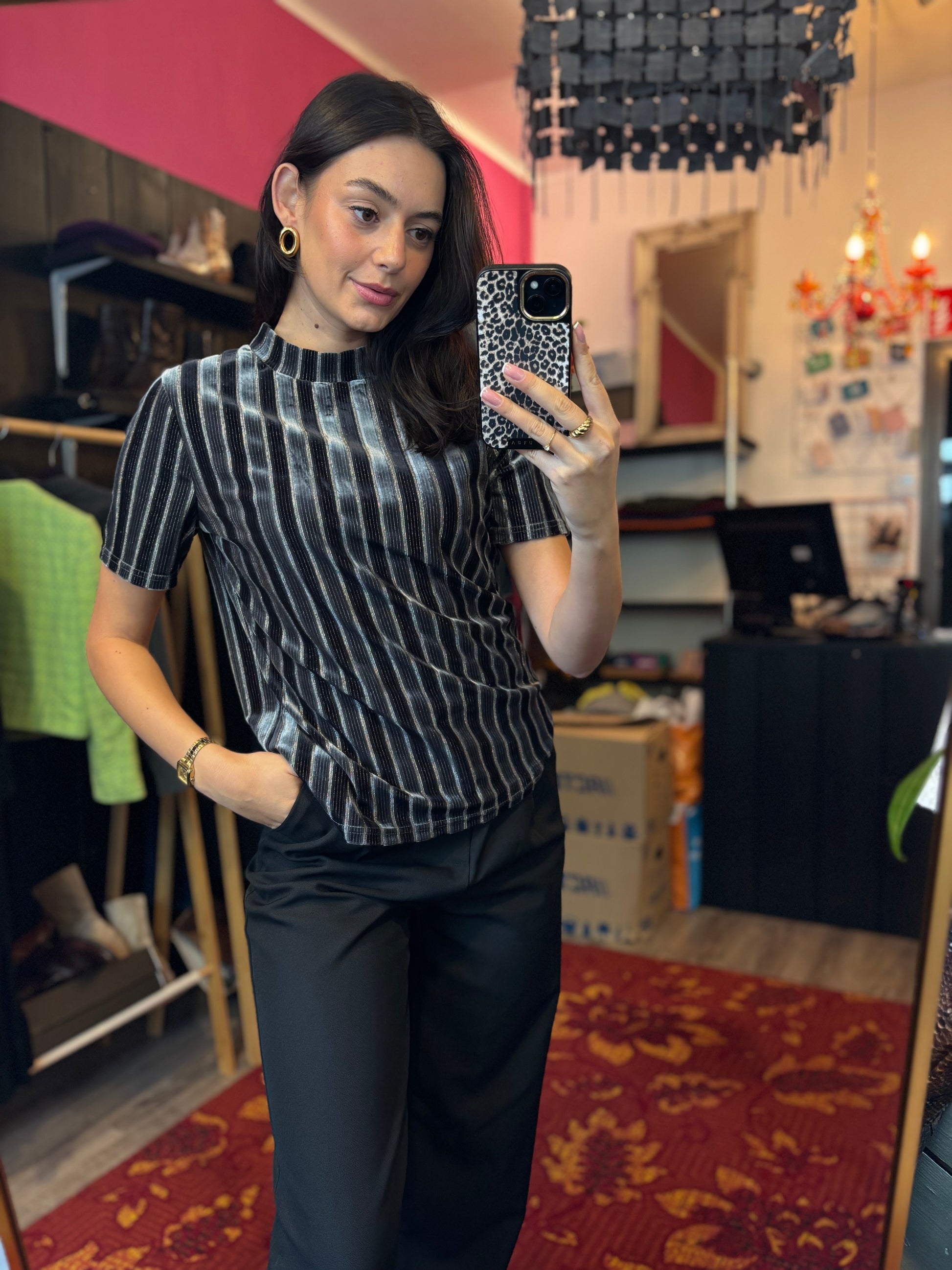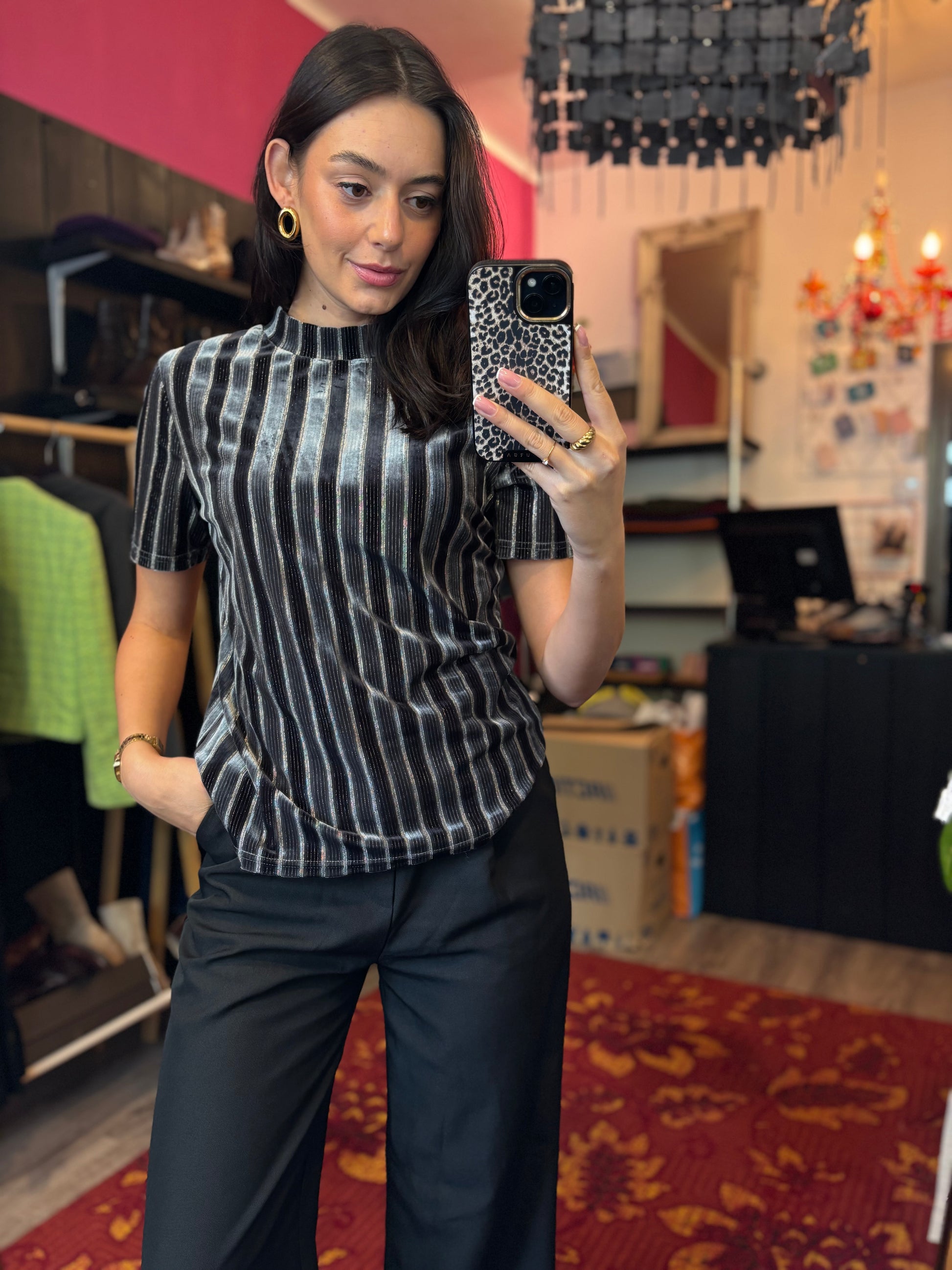 Dominique is 173 cm lang en draagt verschillende maten op de foto’s.