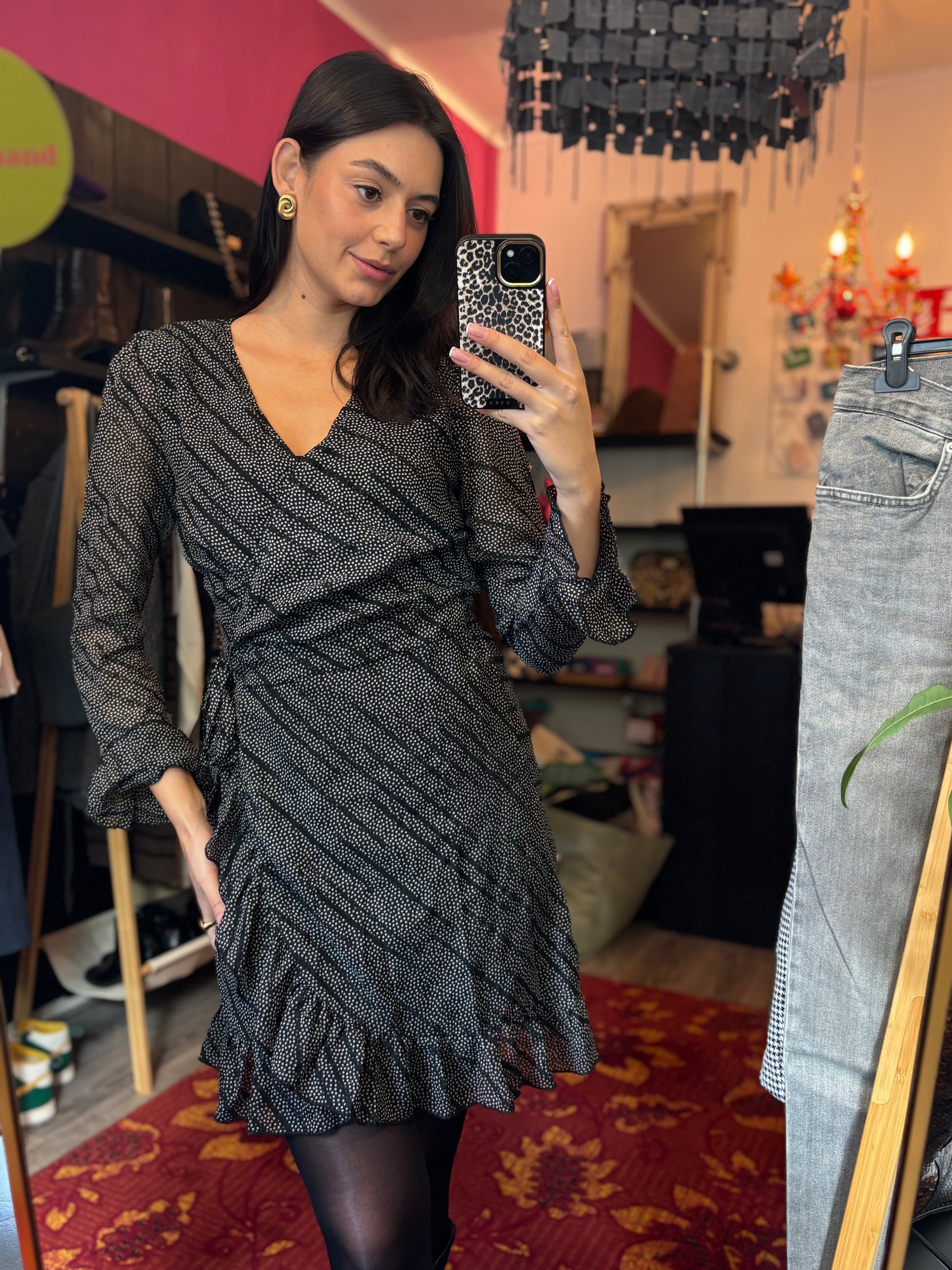Dominique is 173 cm lang en draagt verschillende maten op de foto’s.