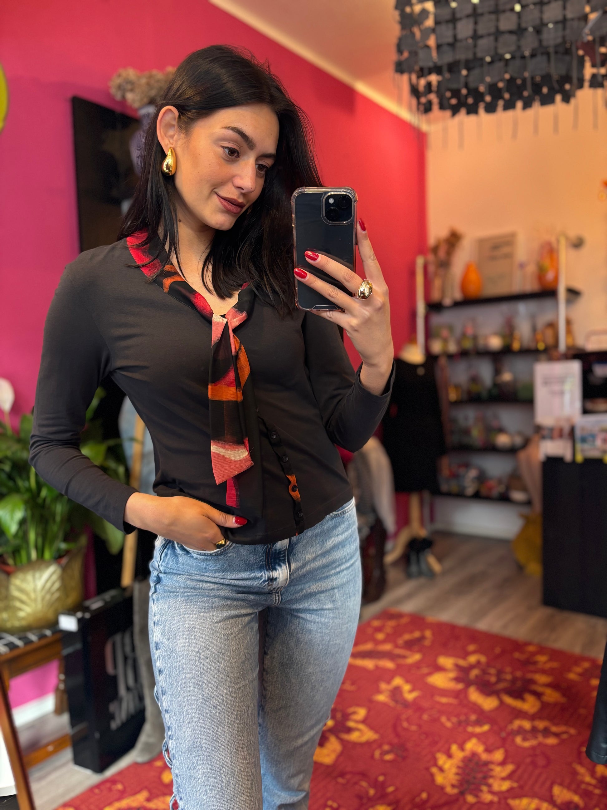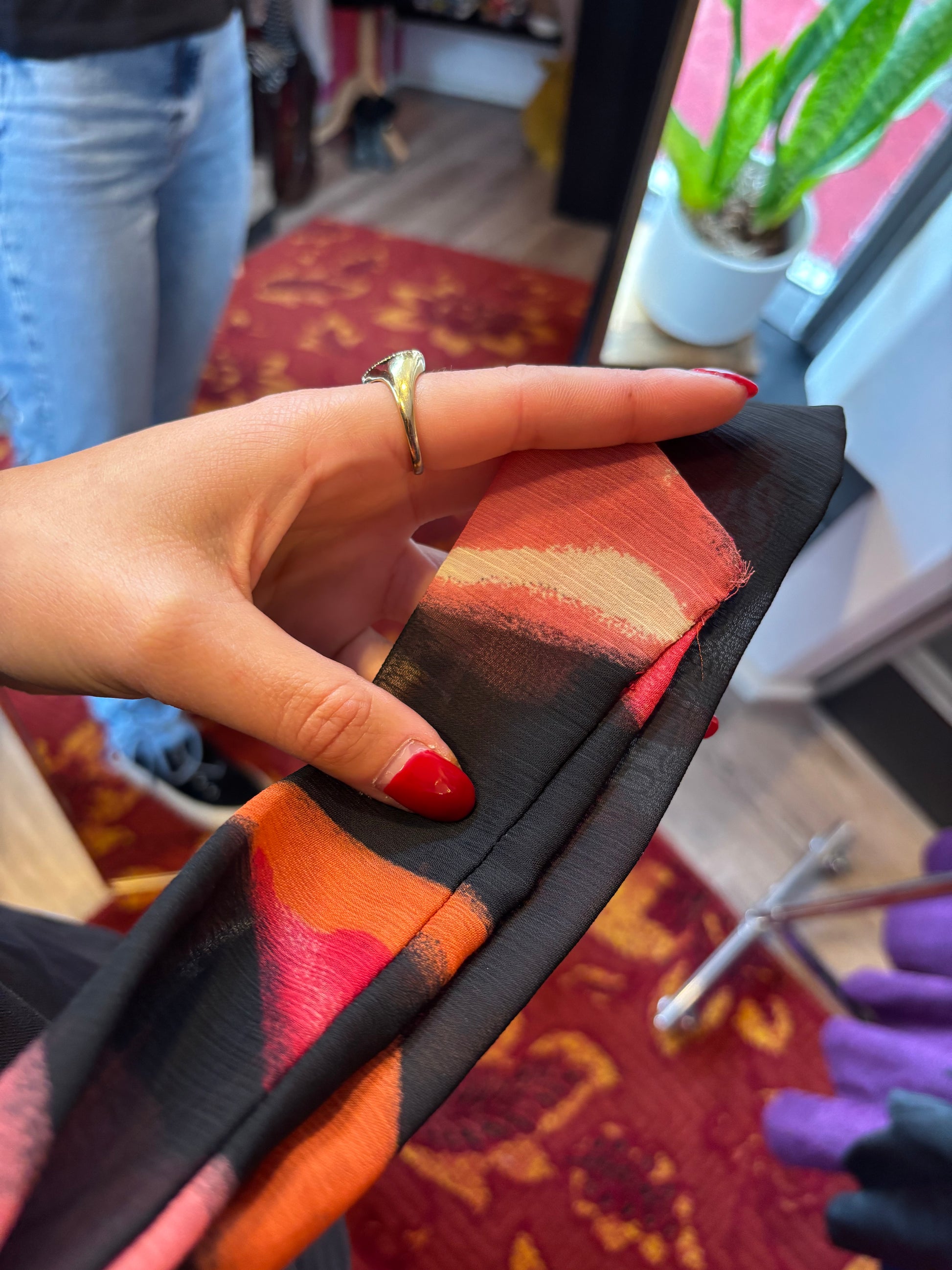 The size is clearly indicated on each product. This is the exact size as indicated on the label. To give the best possible impression of the fit, Dominique sometimes uses clips to adjust the clothing for the photos.