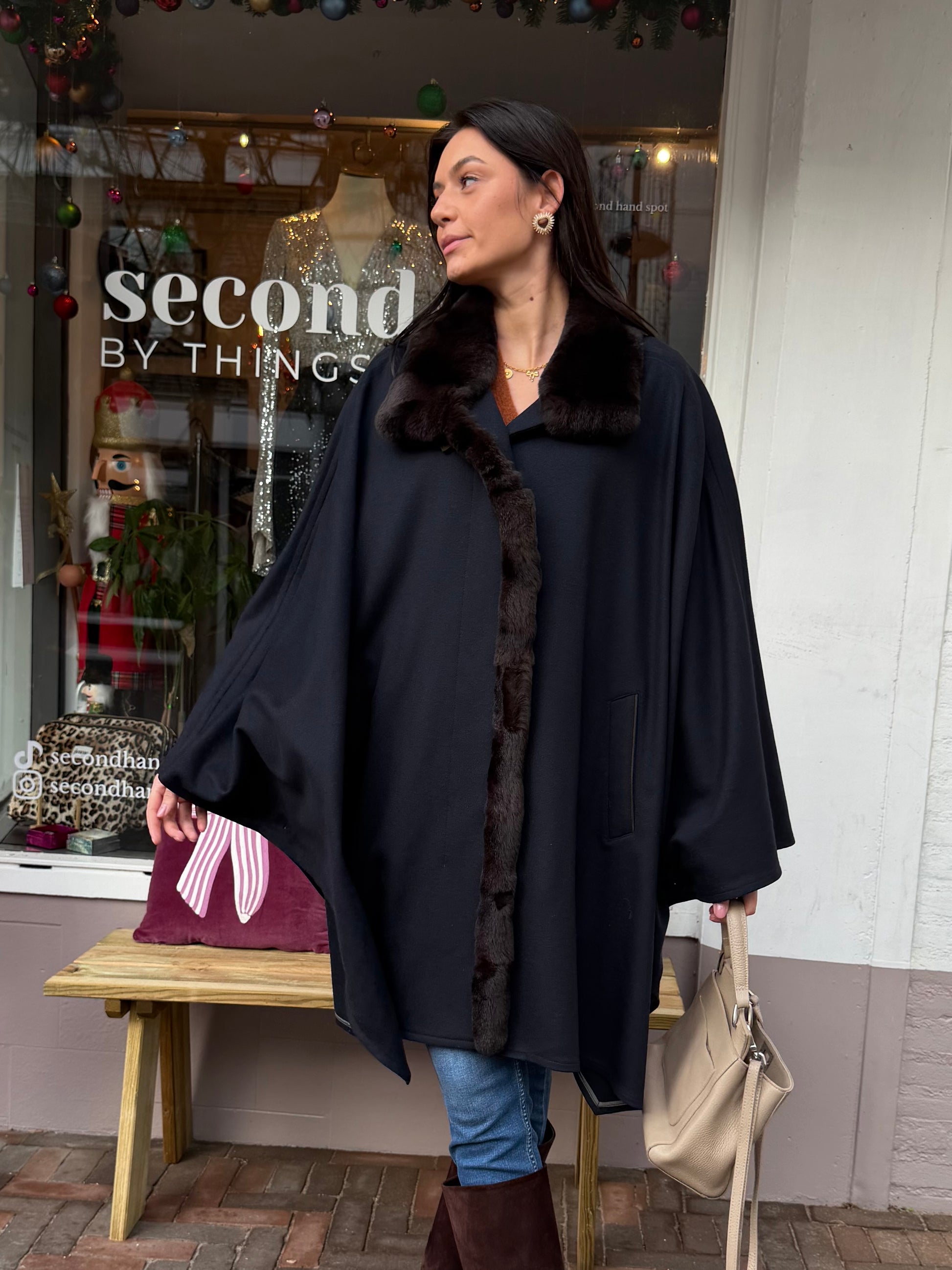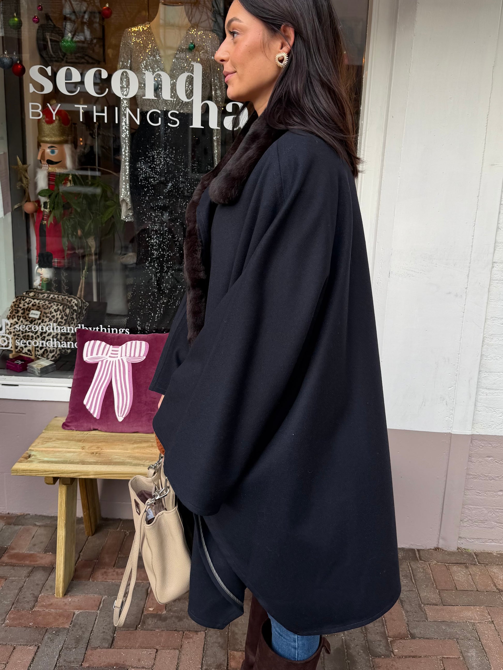 De mantel is vervaardigd uit een luxe mix van virgin wool en cashmere, wat zorgt voor een zachte, warme en hoogwaardige uitstraling. De kraag met bontaccent is vast bevestigd, wat het geheel een verfijnde en rijke look geeft. Daarnaast worden er extra knopen meegeleverd, ideaal voor duurzaamheid en langdurig gebruik.