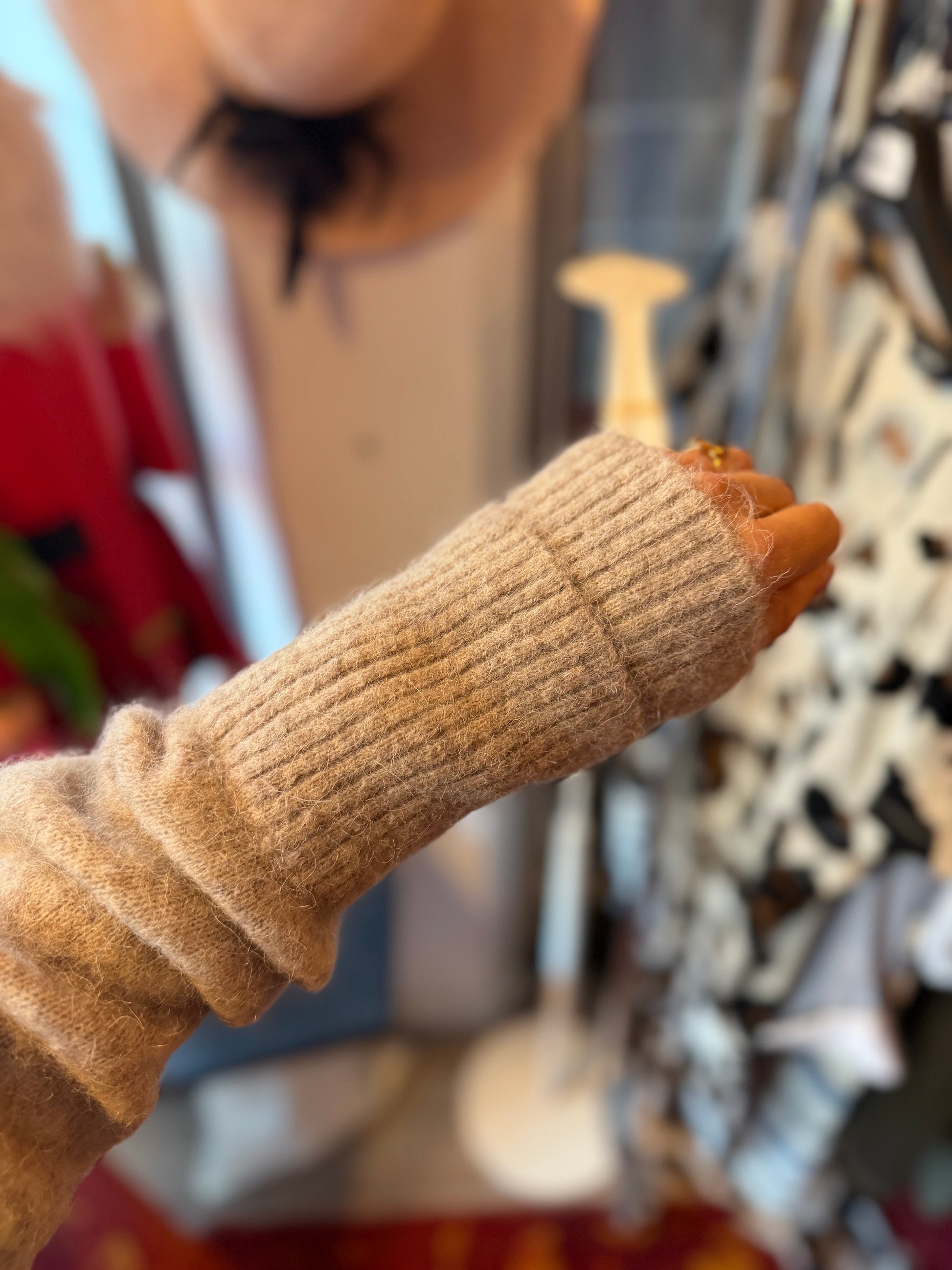 The size is clearly indicated on each product. This is the exact size as indicated on the label. To give the best possible impression of the fit, Dominique sometimes uses clips to adjust the clothing for the photos.