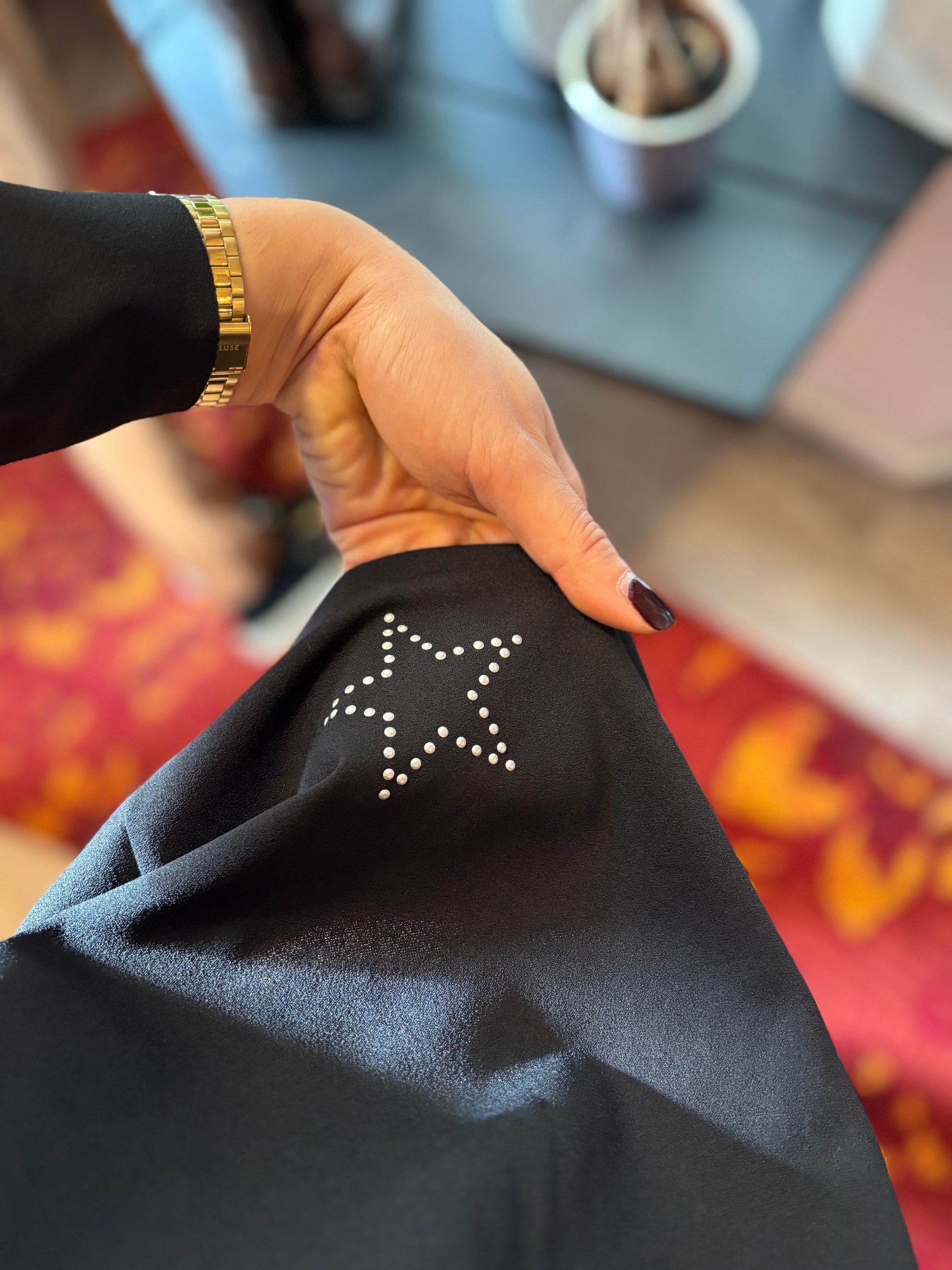 The size is clearly indicated on each product. This is the exact size as indicated on the label. To give the best possible impression of the fit, Dominique sometimes uses clips to adjust the clothing for the photos.