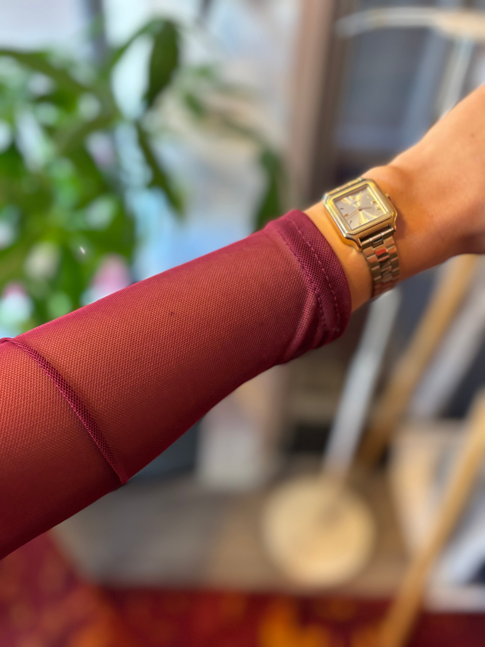 The size is clearly indicated on each product. This is the exact size as indicated on the label. To give the best possible impression of the fit, Dominique sometimes uses clips to adjust the clothing for the photos.
