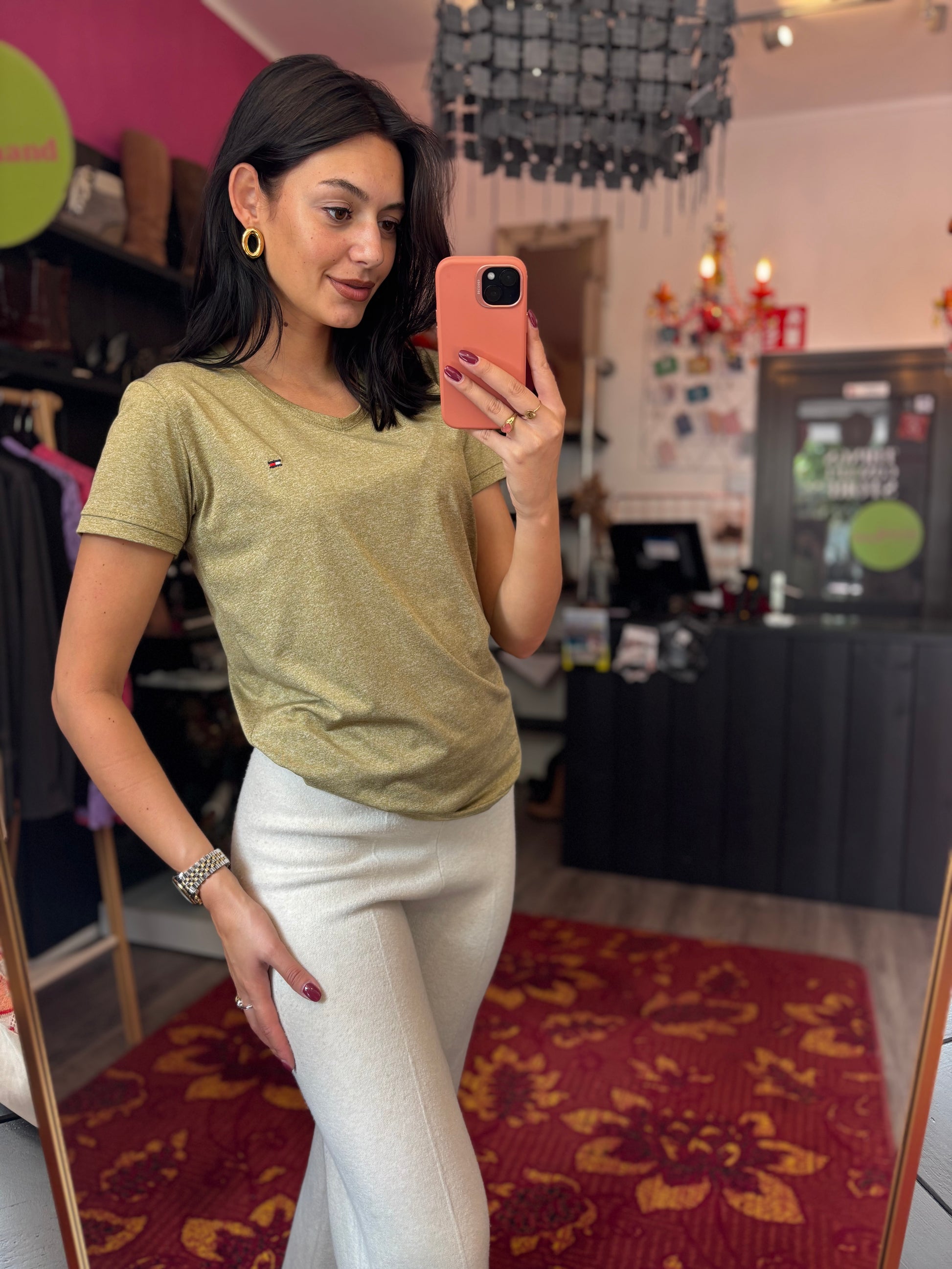 Dominique is 173cm tall and wears different sizes in the photos.
