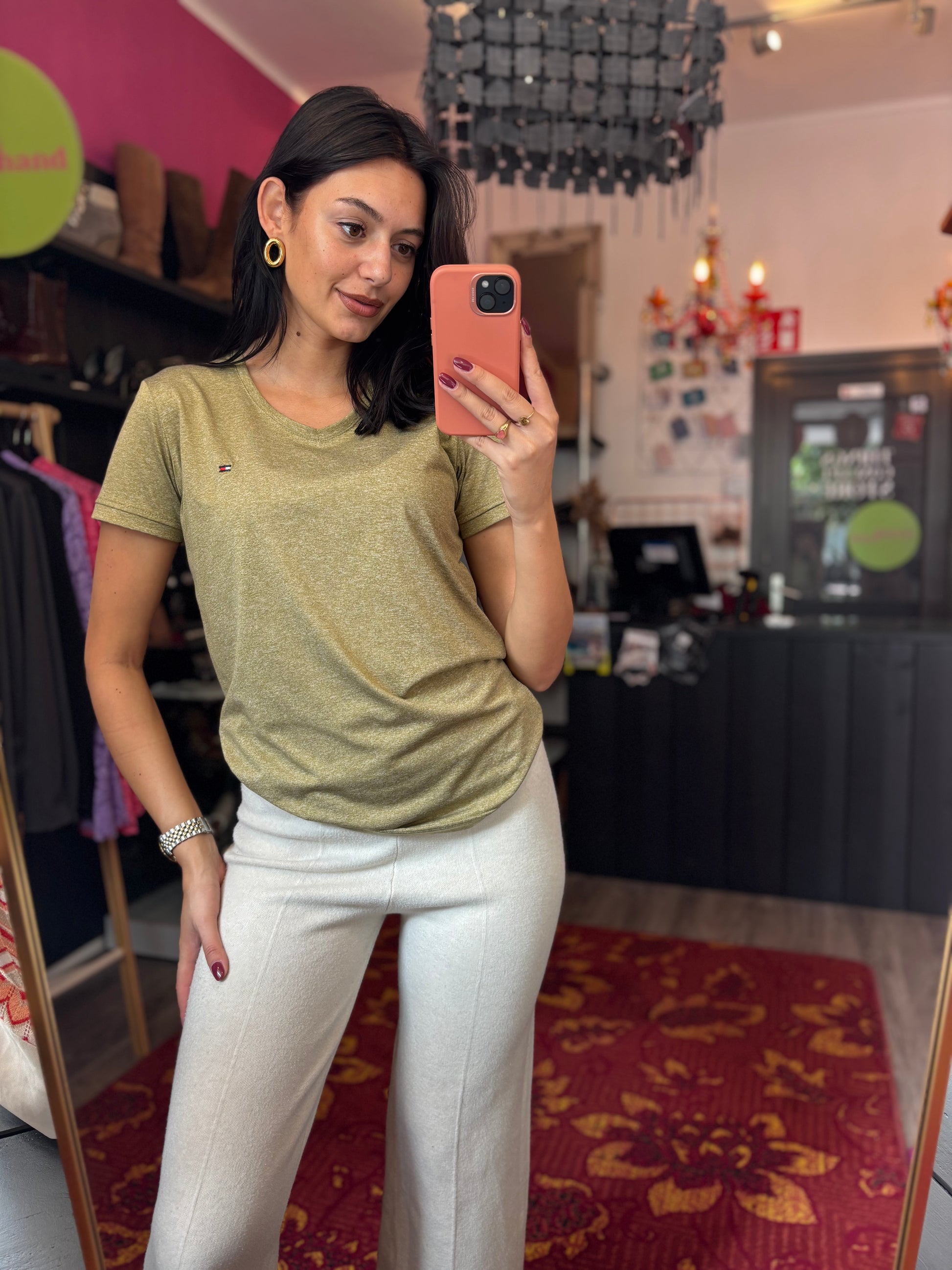 The size is clearly indicated on each product. This is the exact size as indicated on the label. To give the best possible impression of the fit, Dominique sometimes uses clips to adjust the clothing for the photos.