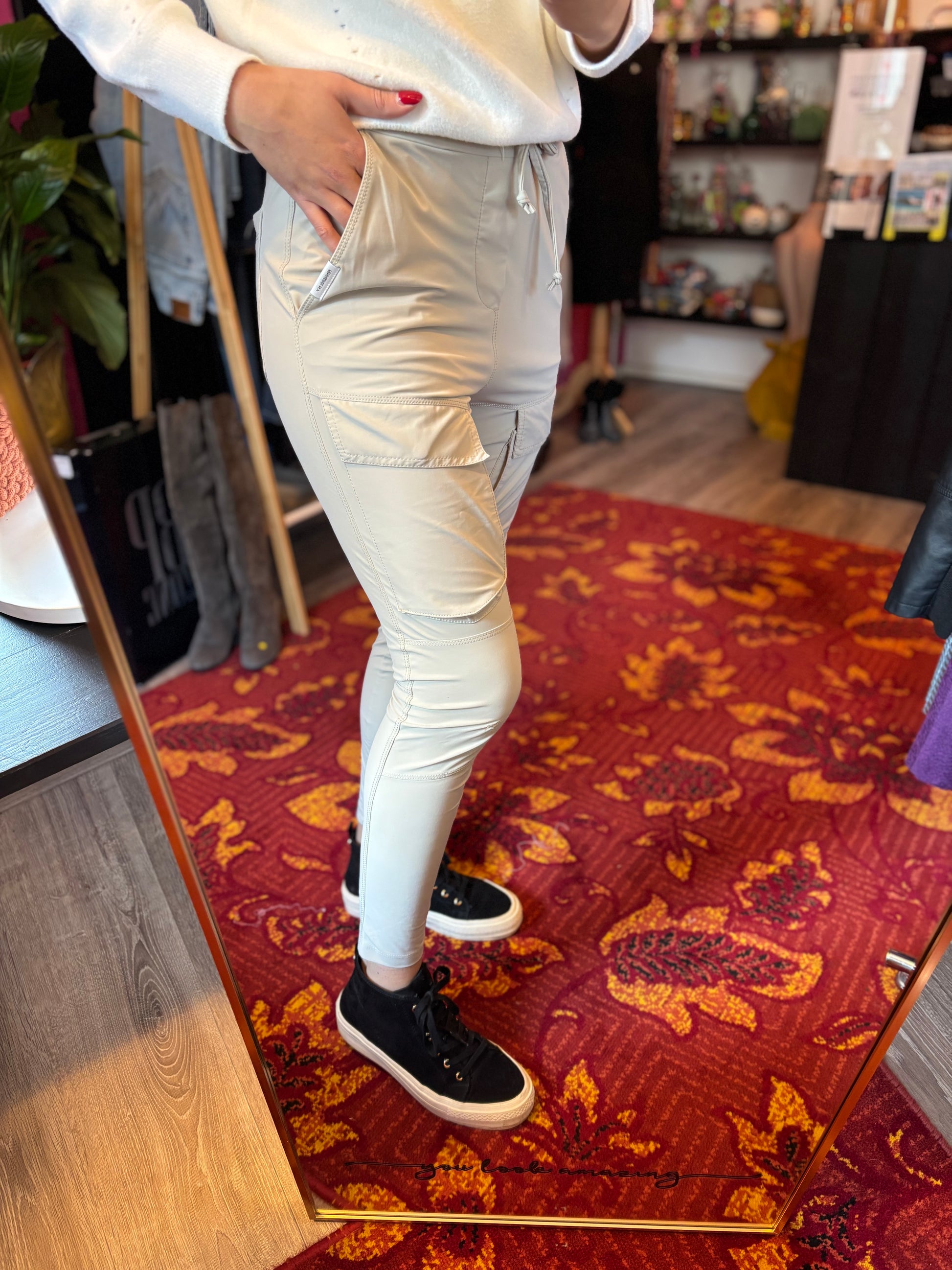 Dominique is 173cm tall and wears different sizes in the photos.