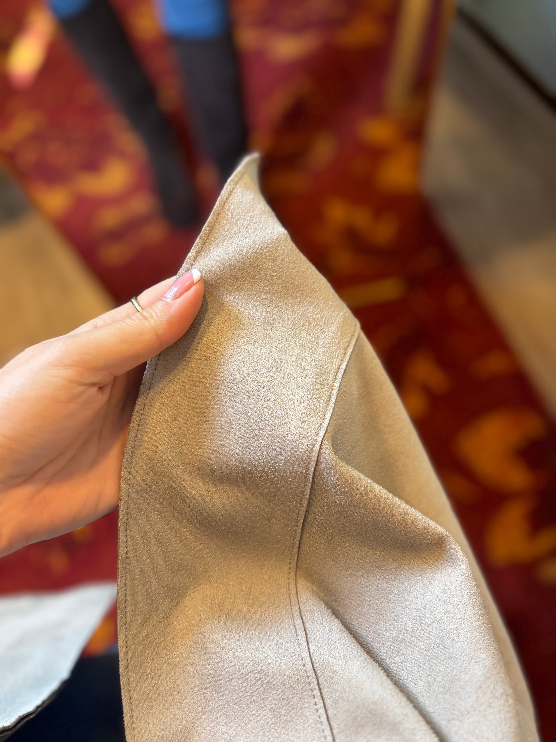 The size is clearly indicated on each product. This is the exact size as indicated on the label. To give the best possible impression of the fit, Dominique sometimes uses clips to adjust the clothing for the photos.