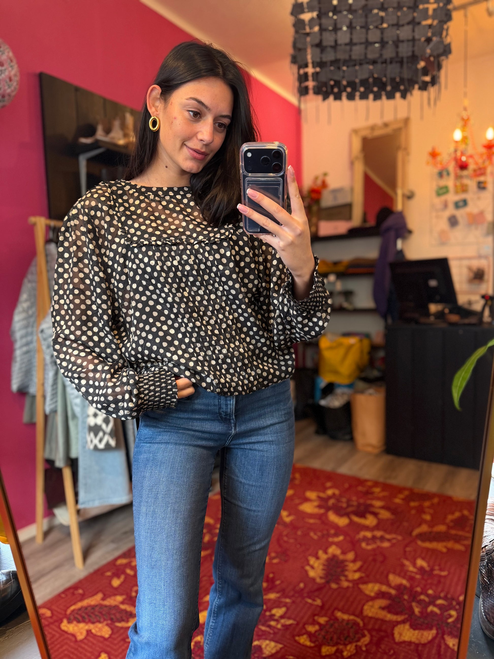 The size is clearly indicated on each product. This is the exact size as indicated on the label. To give the best possible impression of the fit, Dominique sometimes uses clips to adjust the clothing for the photos.