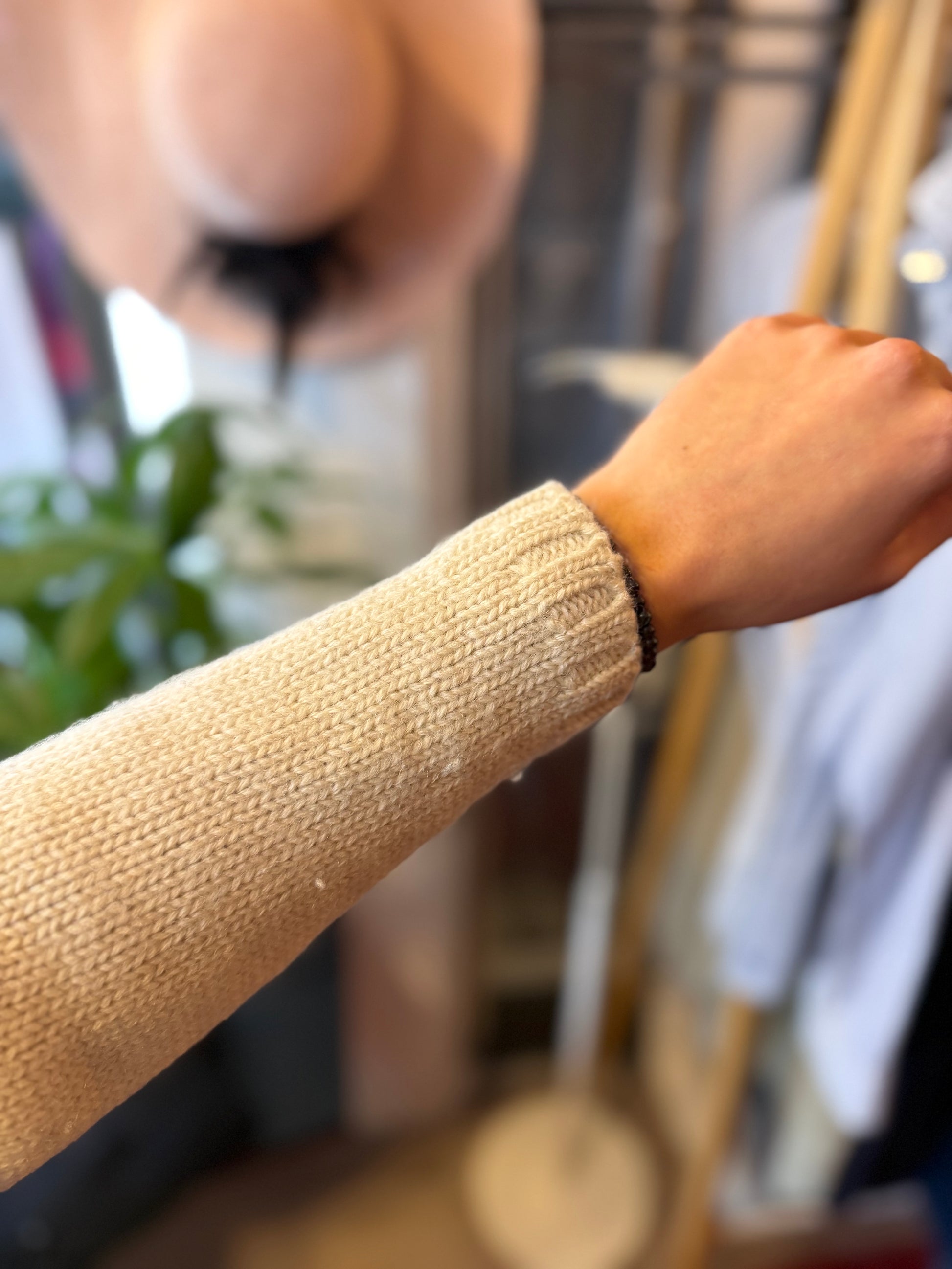 The size is clearly indicated on each product. This is the exact size as indicated on the label. To give the best possible impression of the fit, Dominique sometimes uses clips to adjust the clothing for the photos.