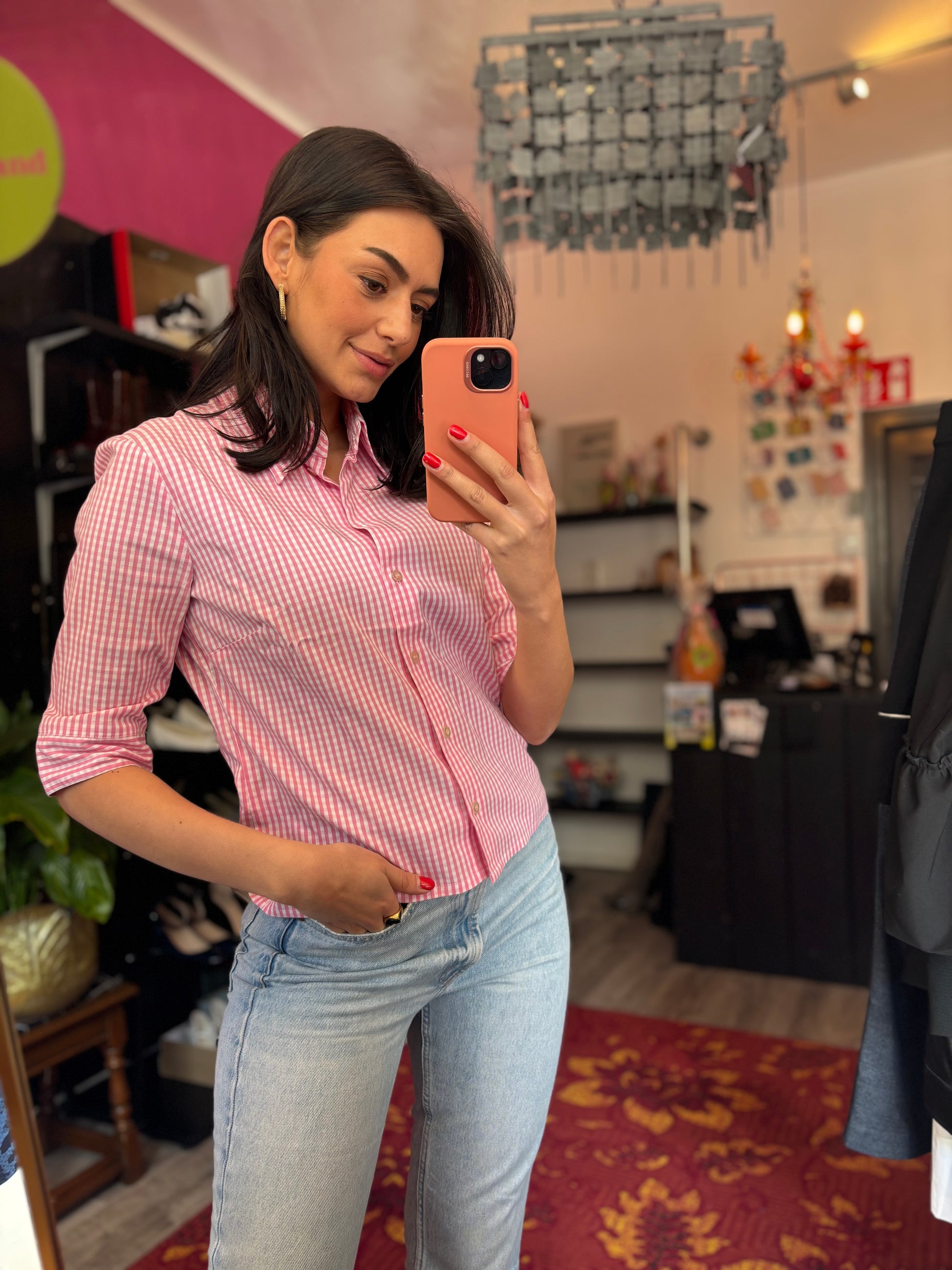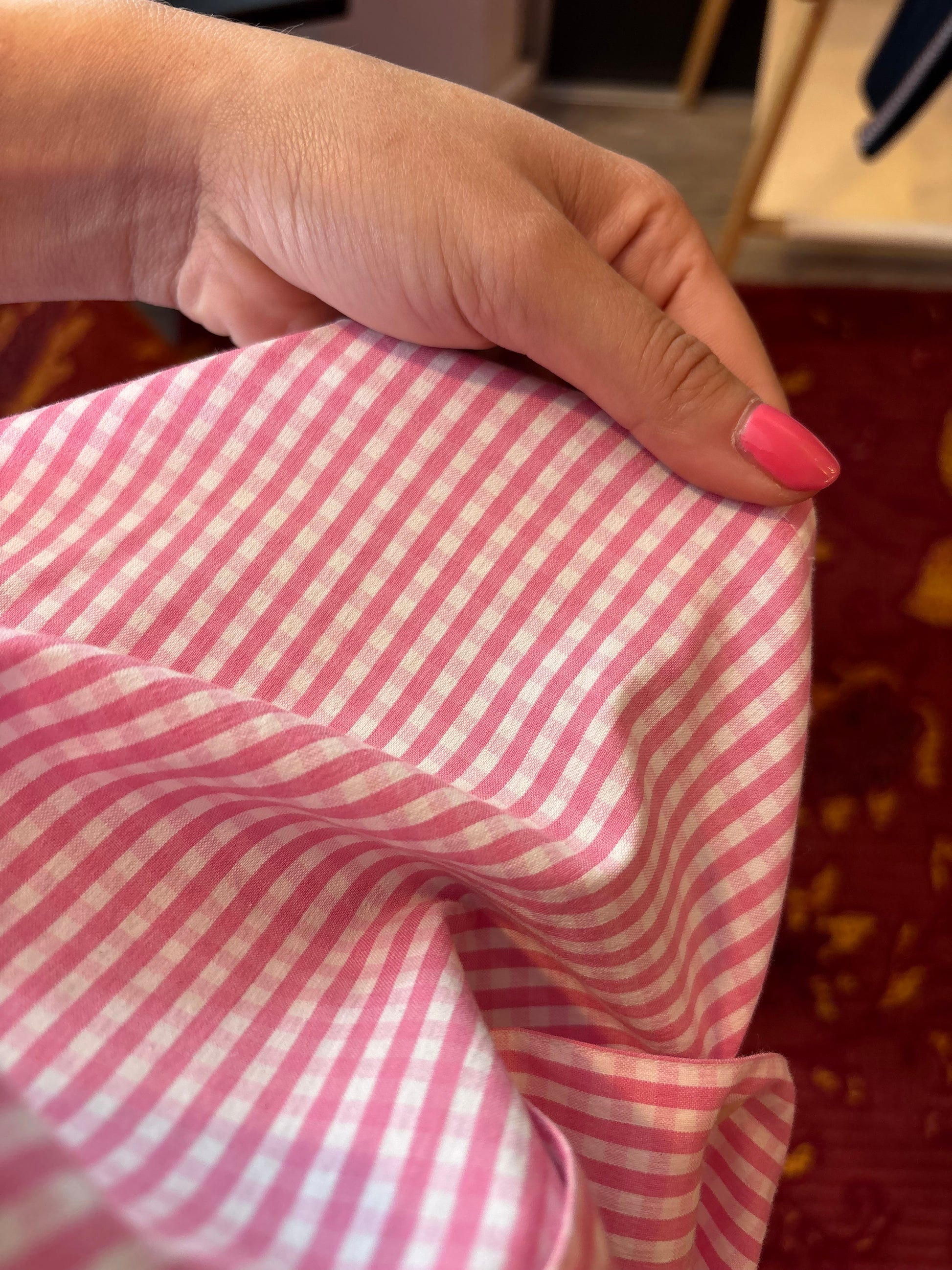 The size is clearly indicated on each product. This is the exact size as indicated on the label. To give the best possible impression of the fit, Dominique sometimes uses clips to adjust the clothing for the photos.