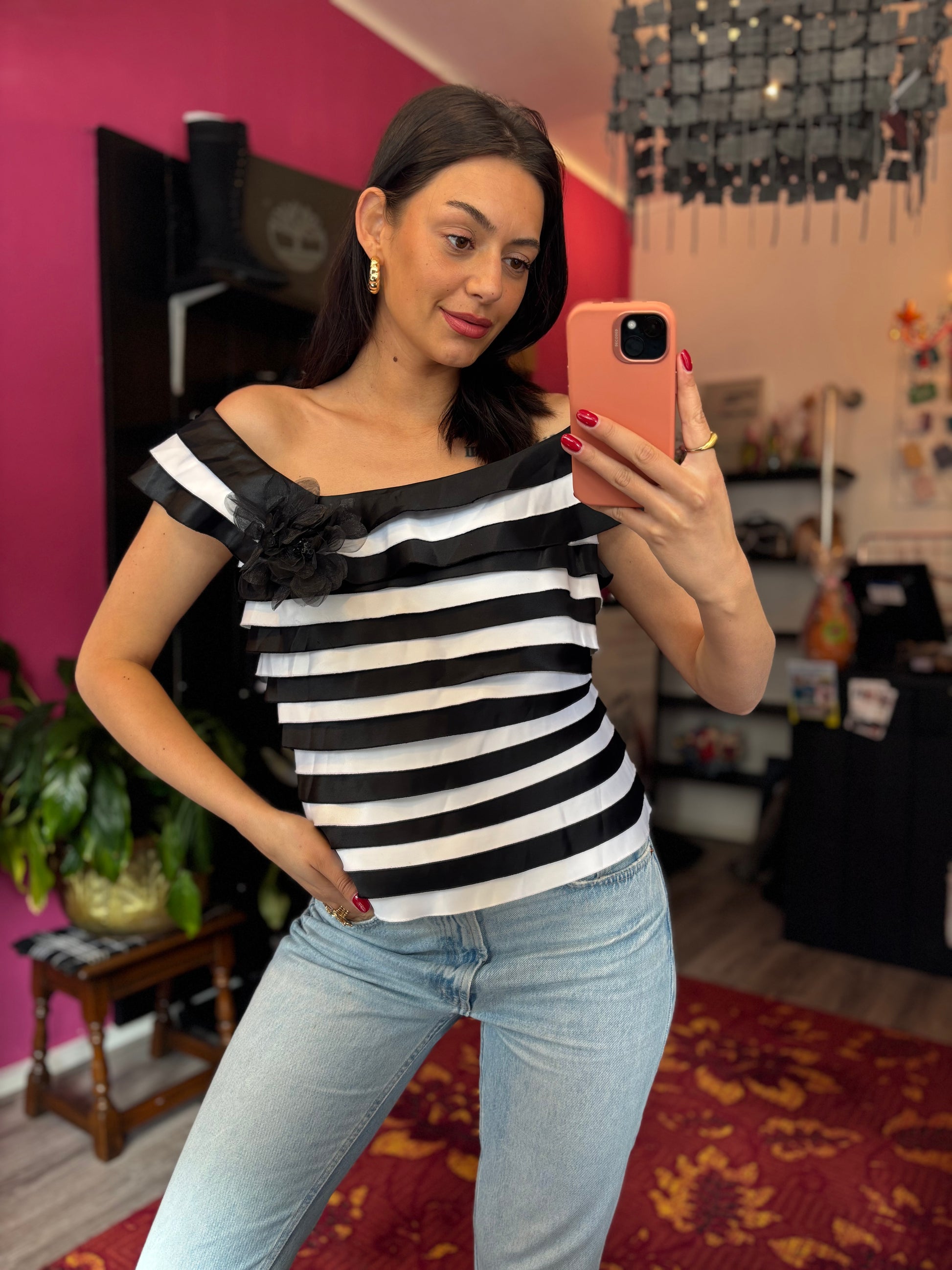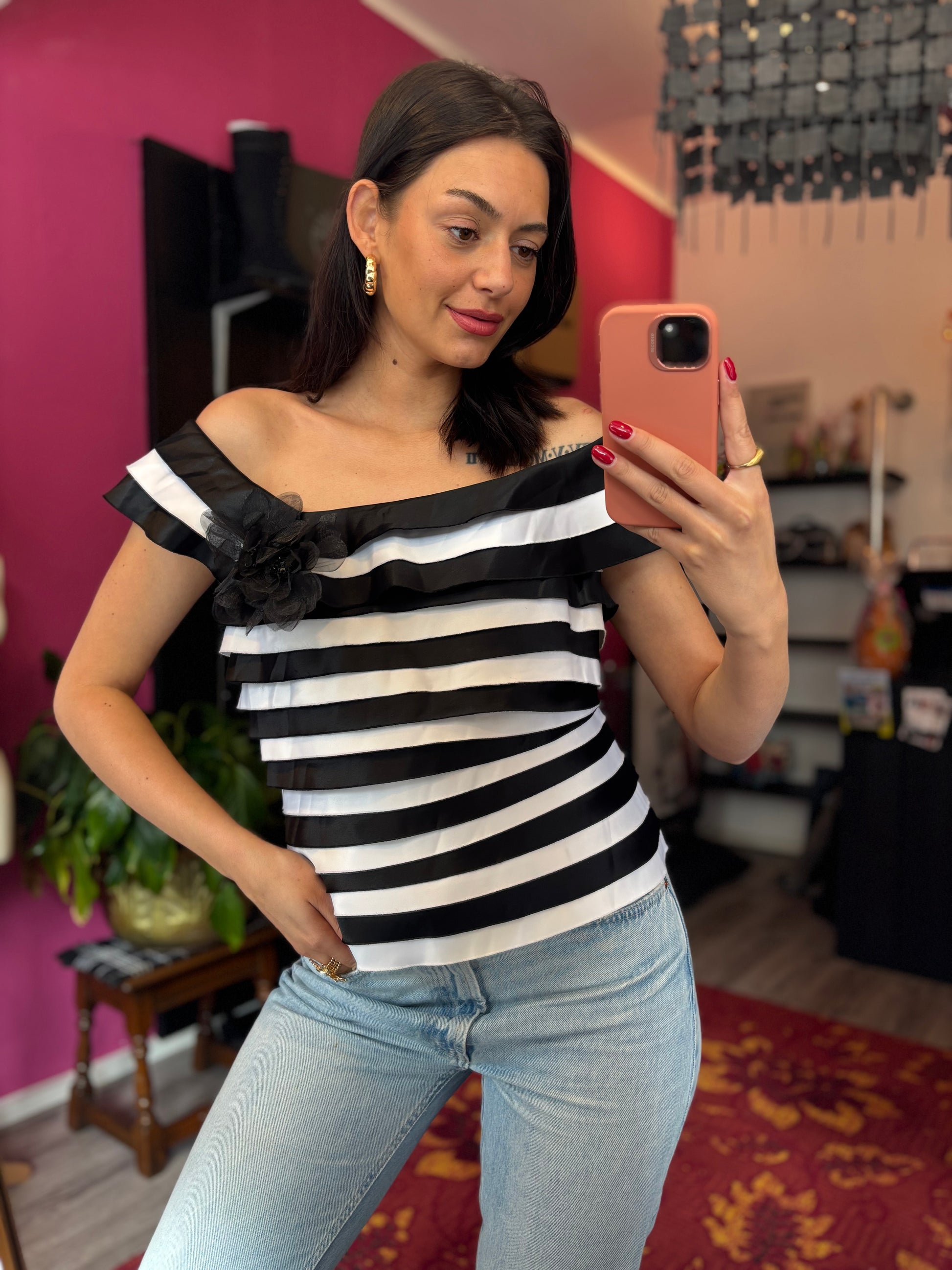 Dominique is 173cm tall and wears different sizes in the photos.
