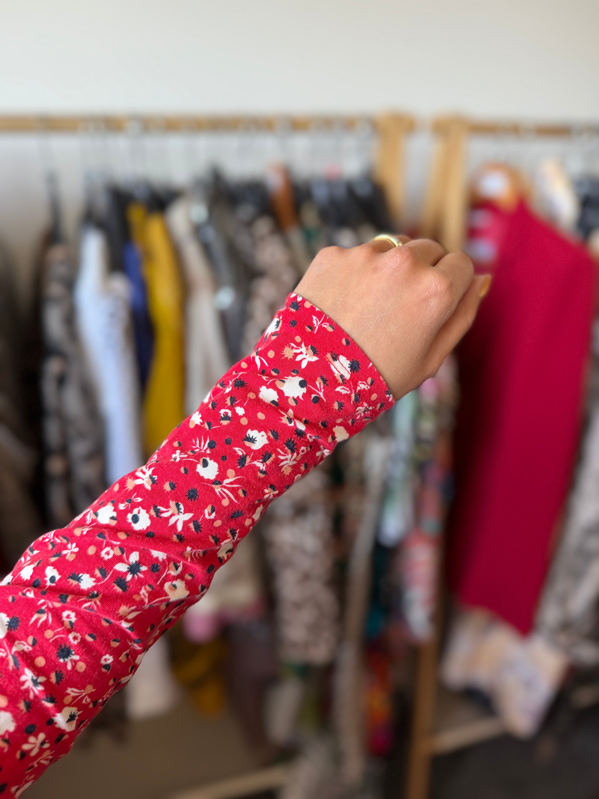 The size is clearly indicated on each product. This is the exact size as indicated on the label. To give the best possible impression of the fit, Dominique sometimes uses clips to adjust the clothing for the photos.