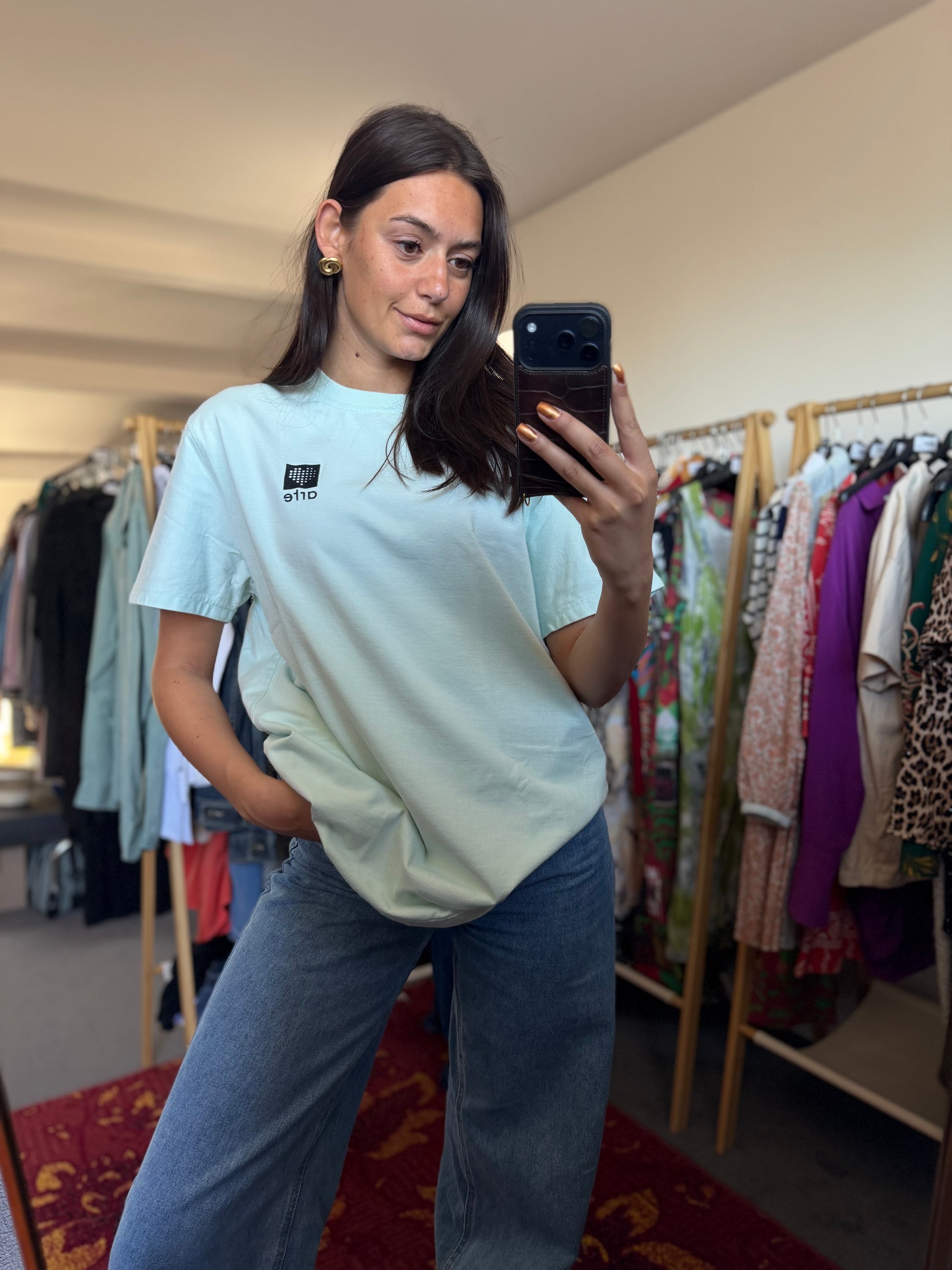The size is clearly indicated on each product. This is the exact size as indicated on the label. To give the best possible impression of the fit, Dominique sometimes uses clips to adjust the clothing for the photos.