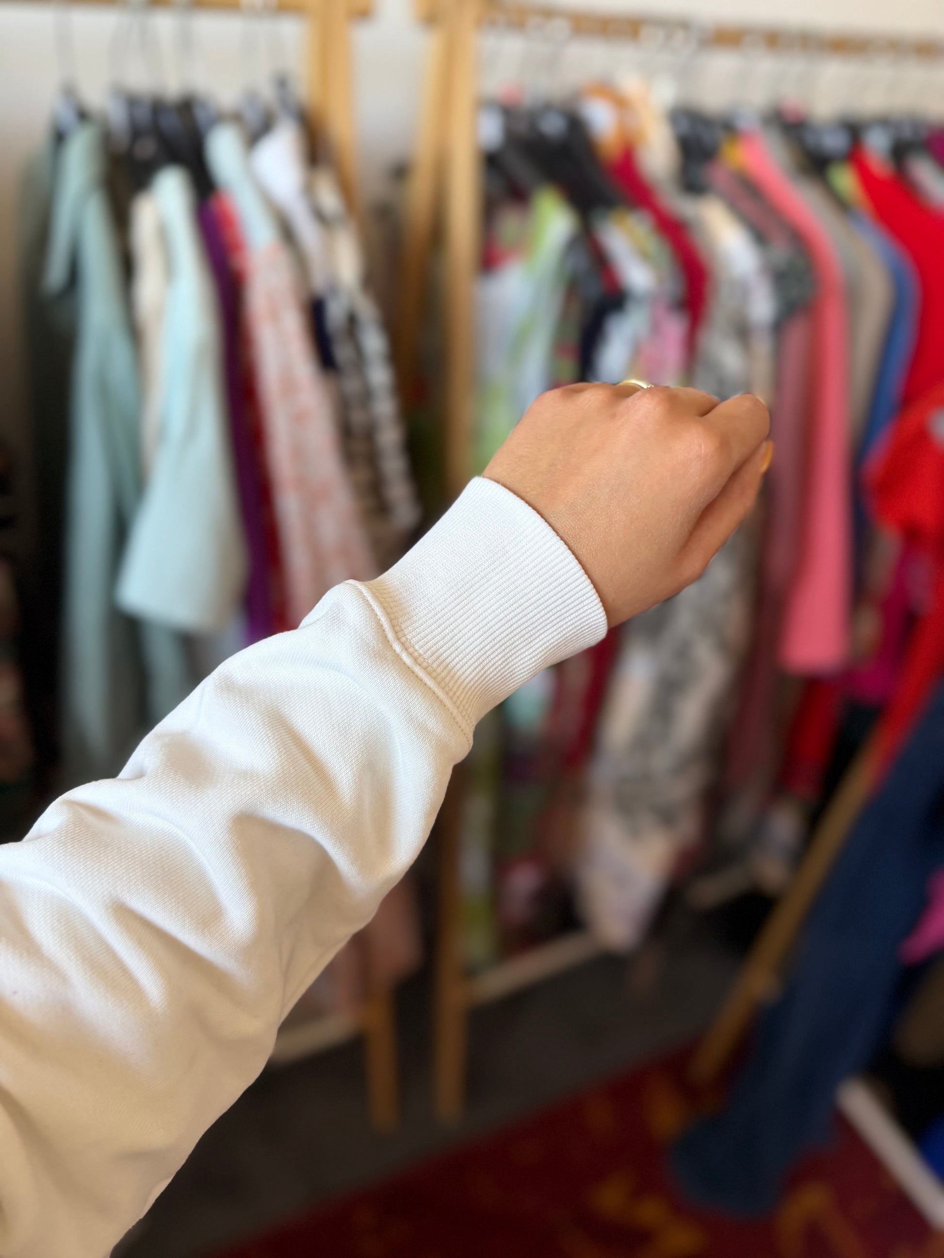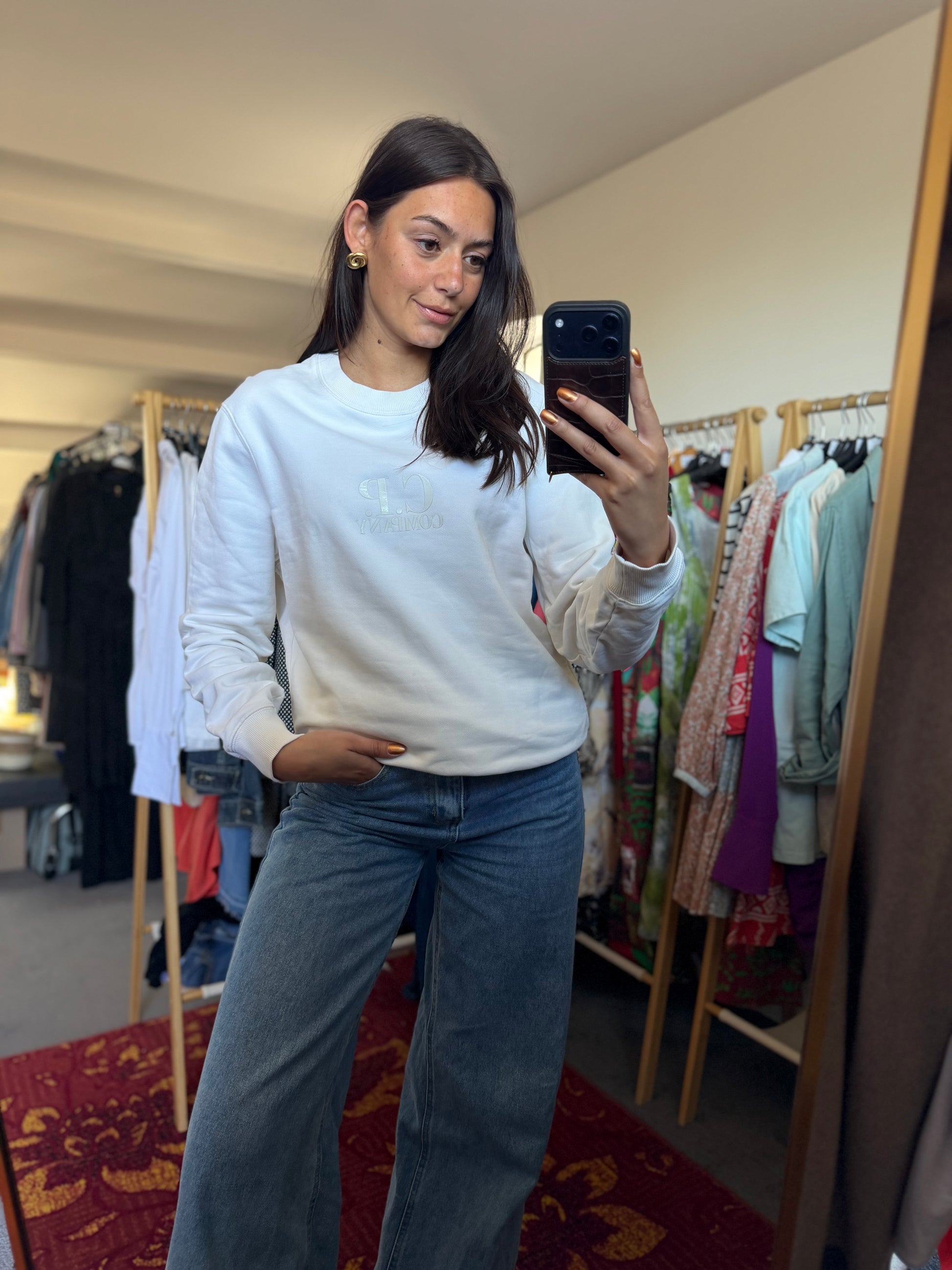 The size is clearly indicated on each product. This is the exact size as indicated on the label. To give the best possible impression of the fit, Dominique sometimes uses clips to adjust the clothing for the photos.