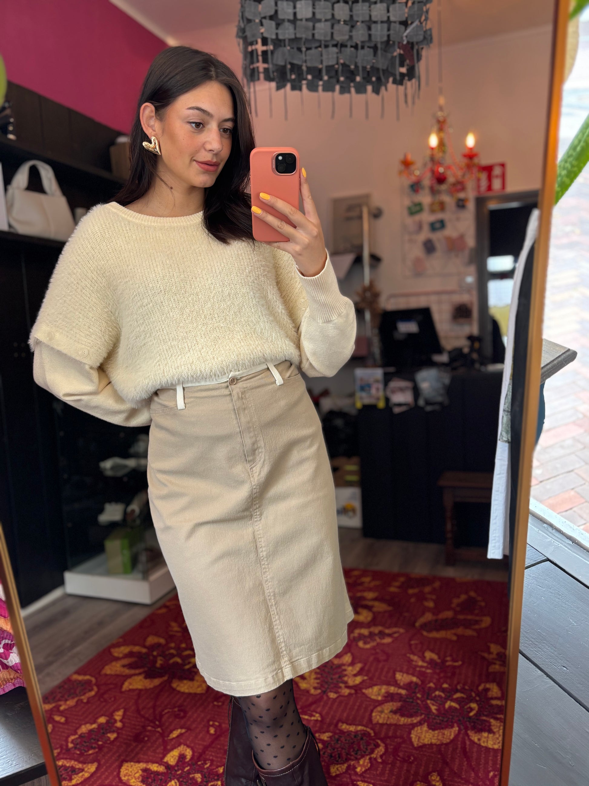 The size is clearly indicated on each product. This is the exact size as indicated on the label. To give the best possible impression of the fit, Dominique sometimes uses clips to adjust the clothing for the photos.