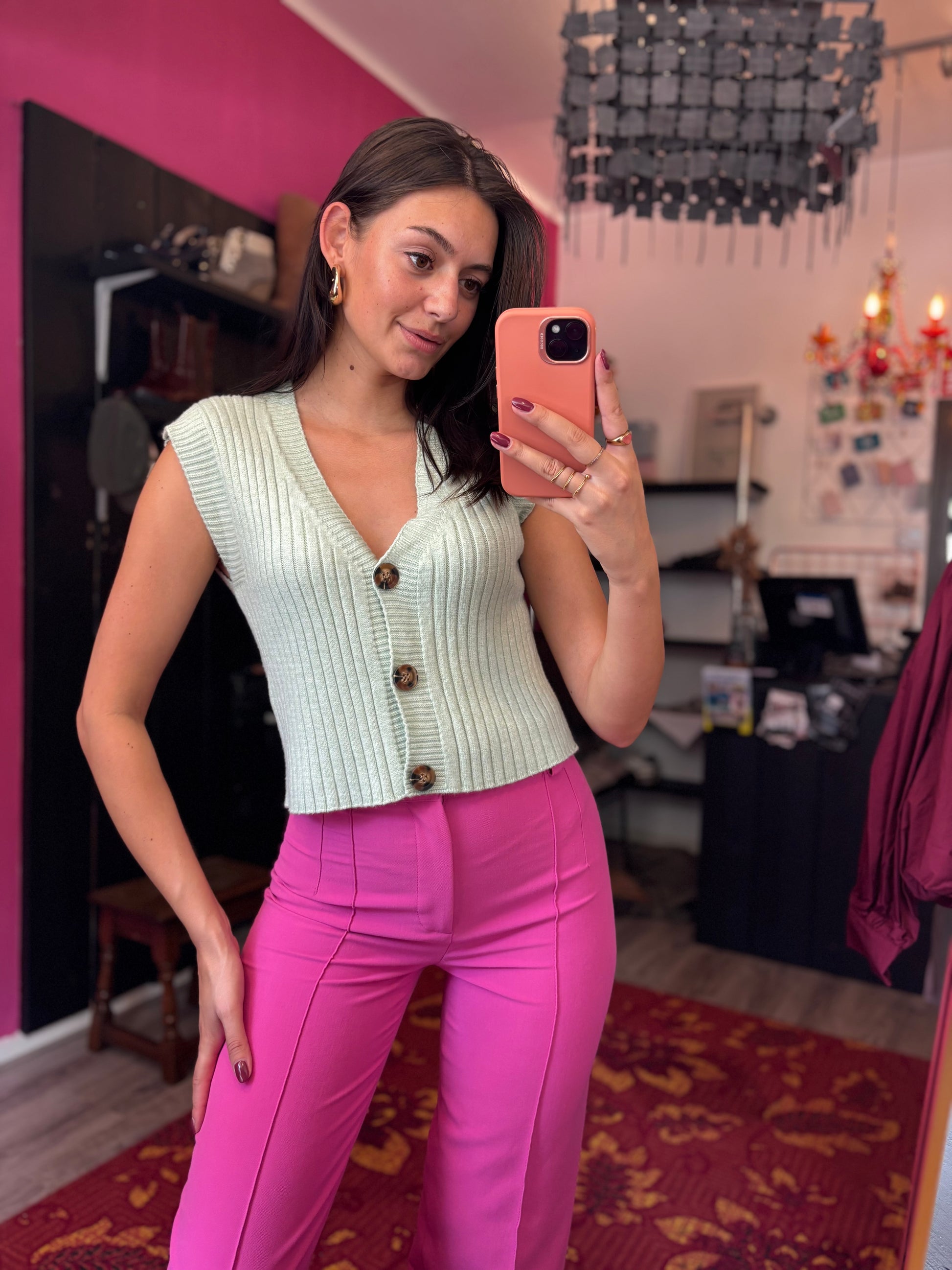 The size is clearly indicated on each product. This is the exact size as indicated on the label. To give the best possible impression of the fit, Dominique sometimes uses clips to adjust the clothing for the photos.