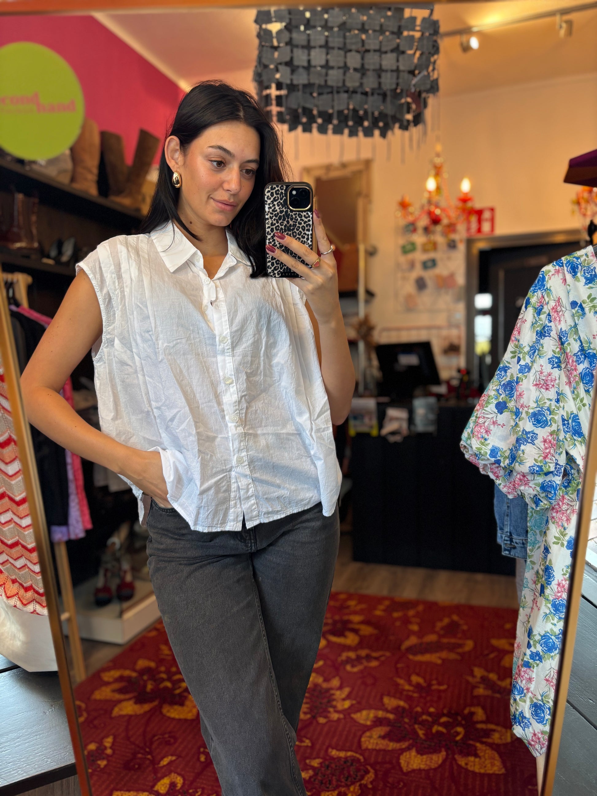 The size is clearly indicated on each product. This is the exact size as indicated on the label. To give the best possible impression of the fit, Dominique sometimes uses clips to adjust the clothing for the photos.