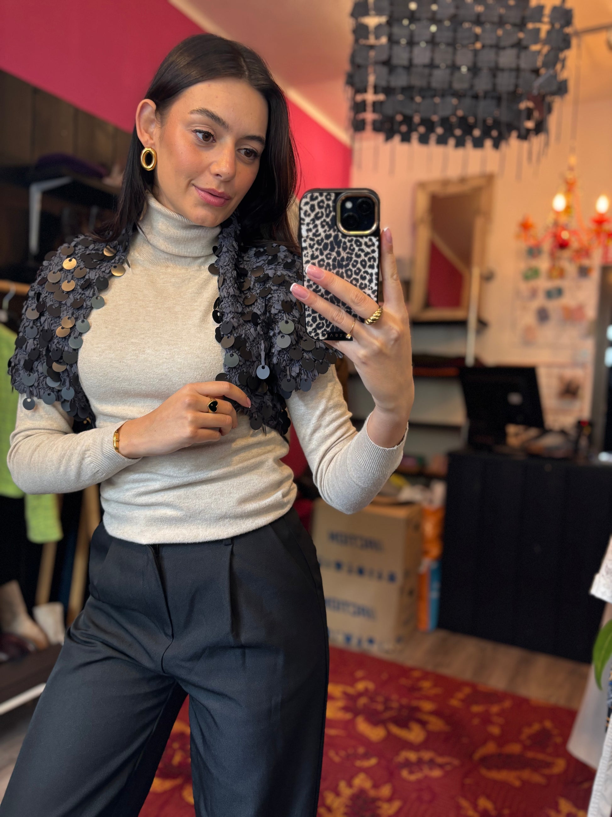 The size is clearly indicated on each product. This is the exact size as indicated on the label. To give the best possible impression of the fit, Dominique sometimes uses clips to adjust the clothing for the photos.