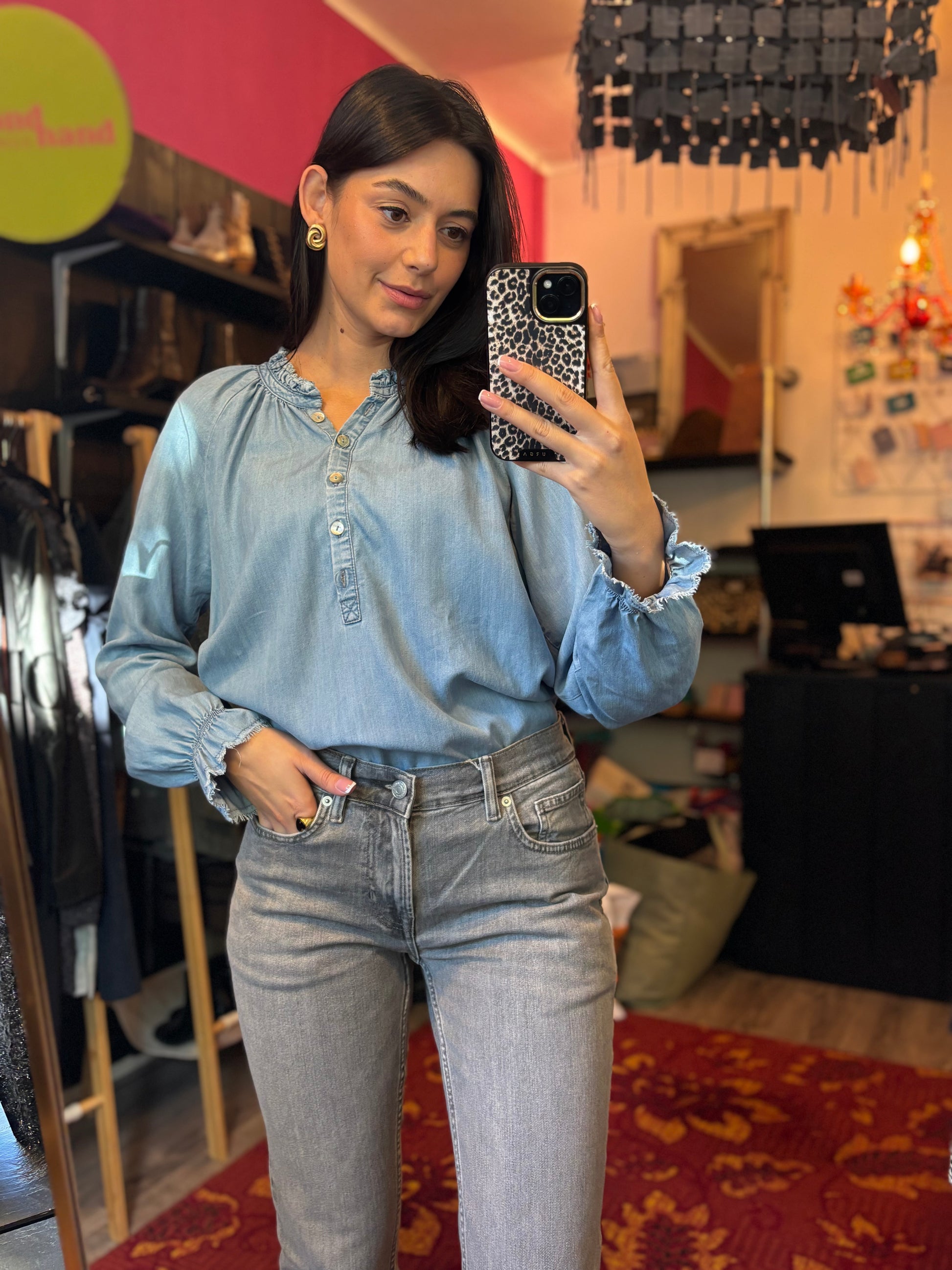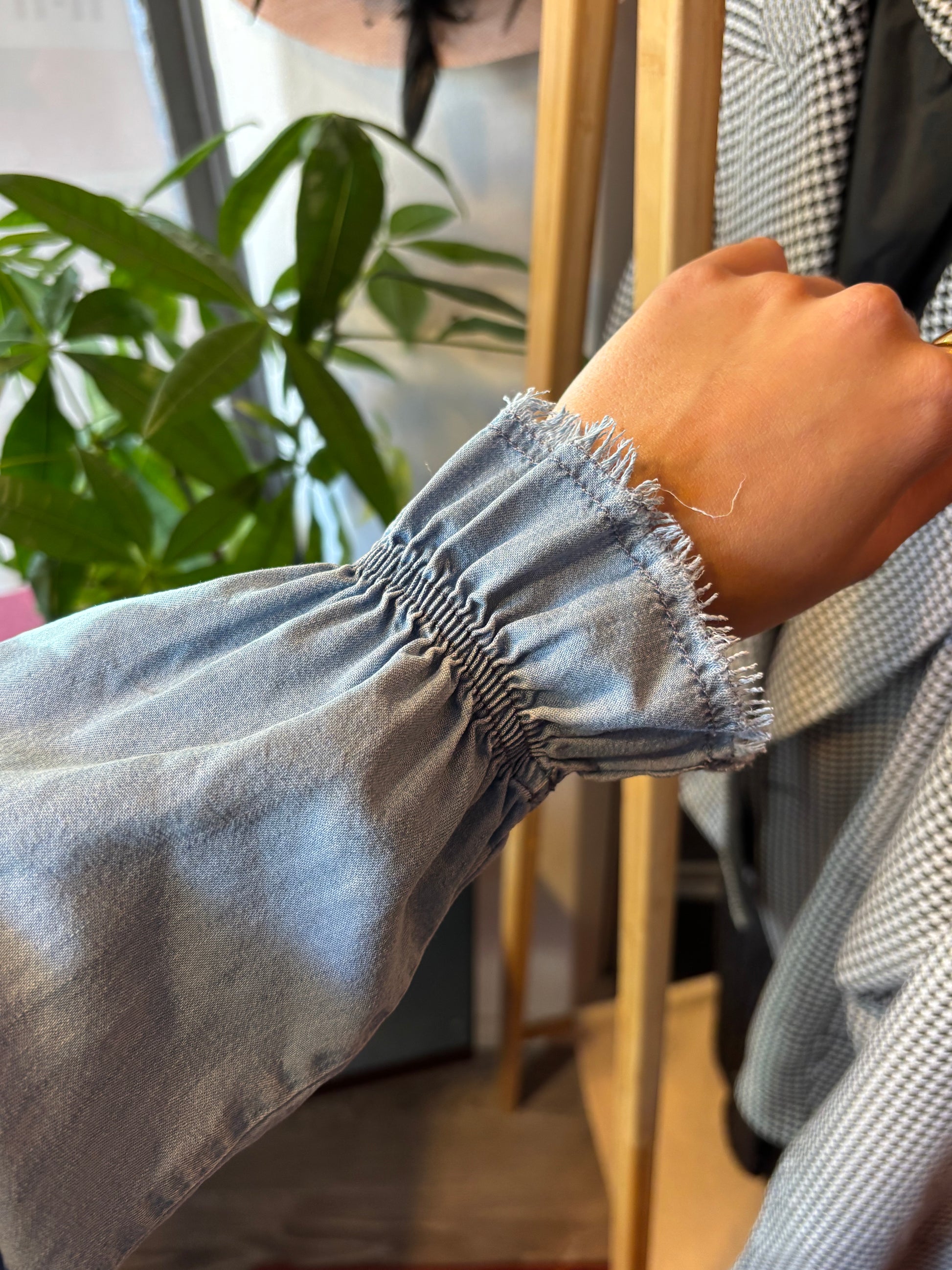 The size is clearly indicated on each product. This is the exact size as indicated on the label. To give the best possible impression of the fit, Dominique sometimes uses clips to adjust the clothing for the photos.