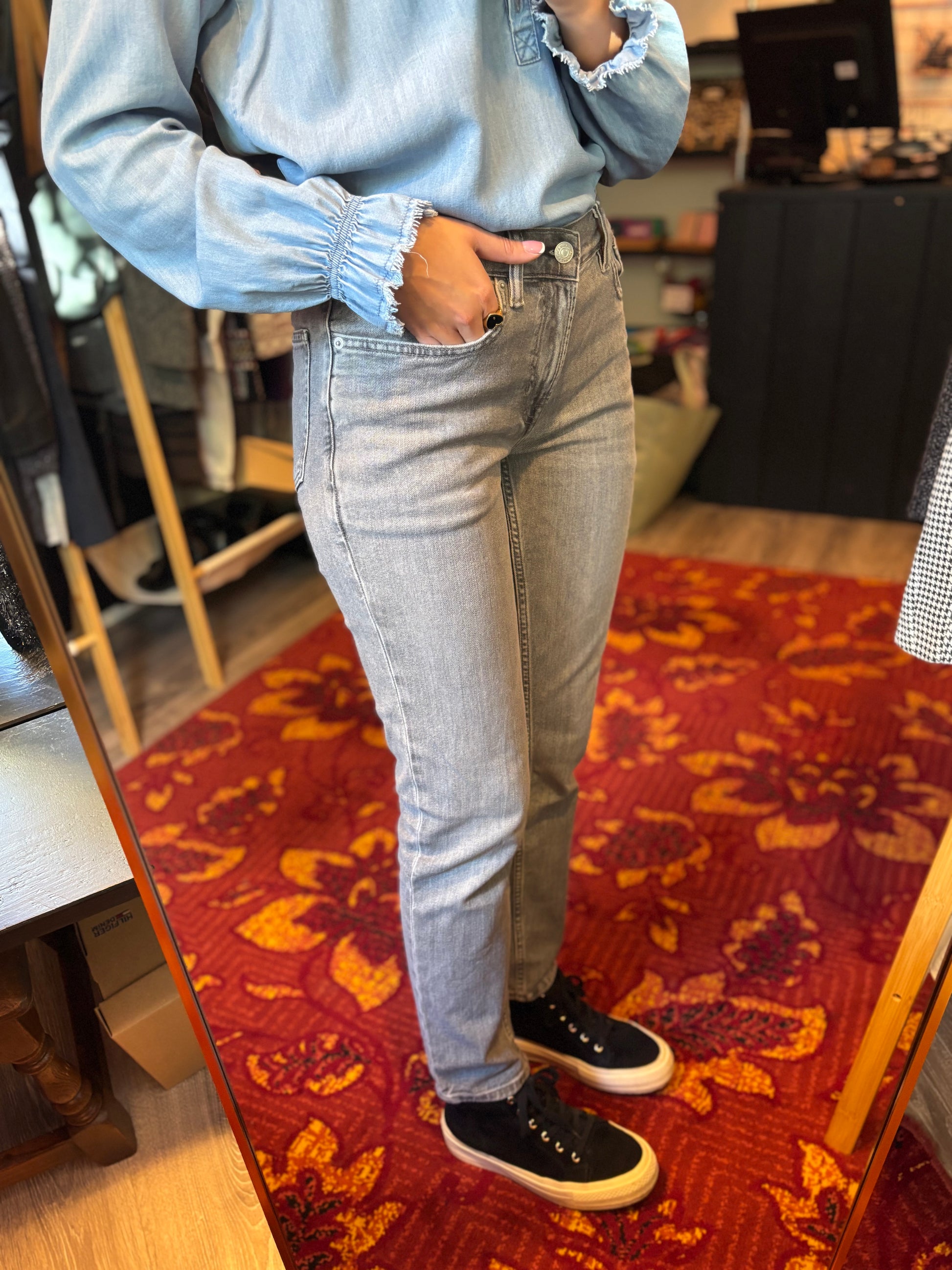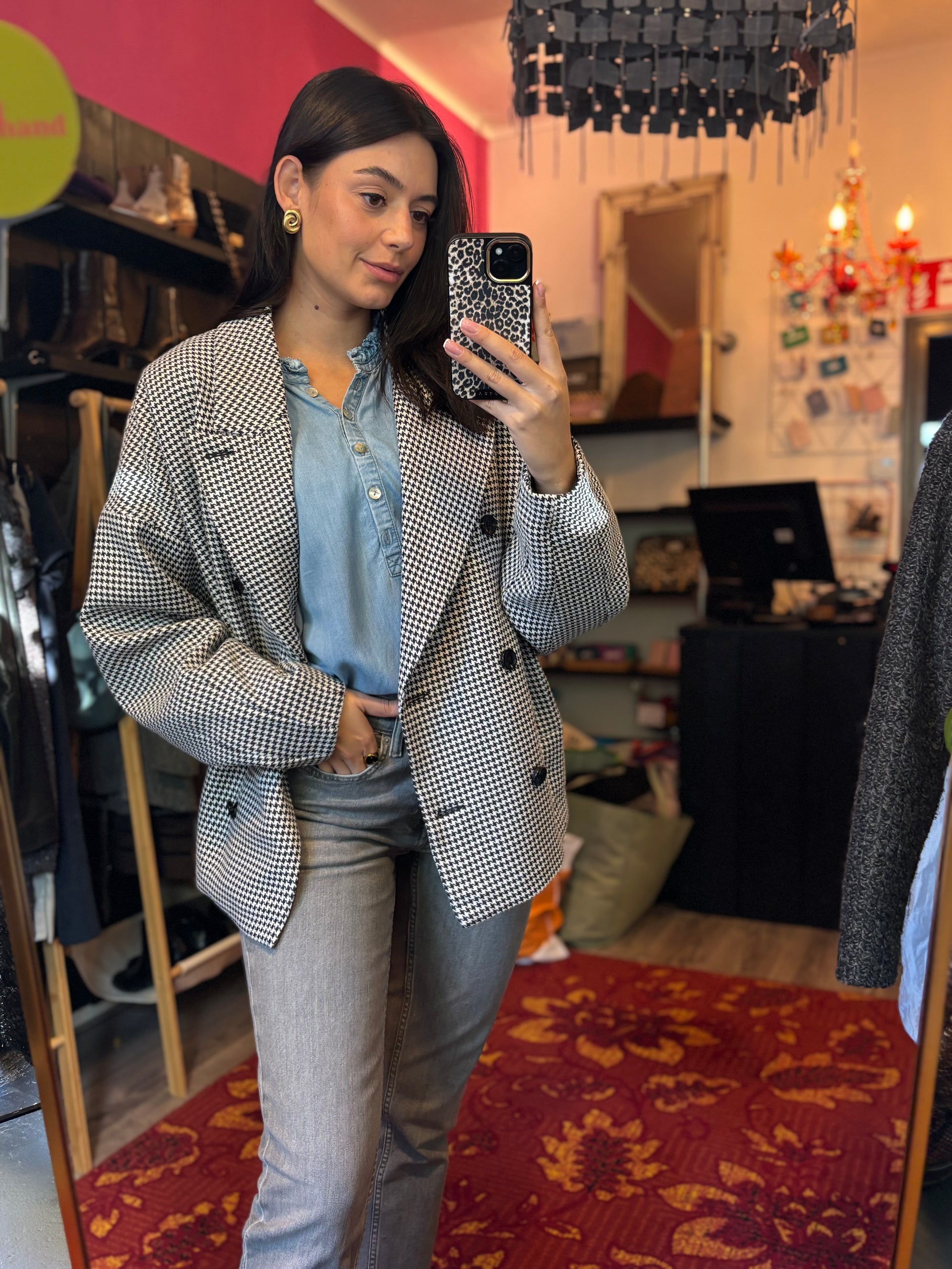 The size is clearly indicated on each product. This is the exact size as indicated on the label. To give the best possible impression of the fit, Dominique sometimes uses clips to adjust the clothing for the photos.