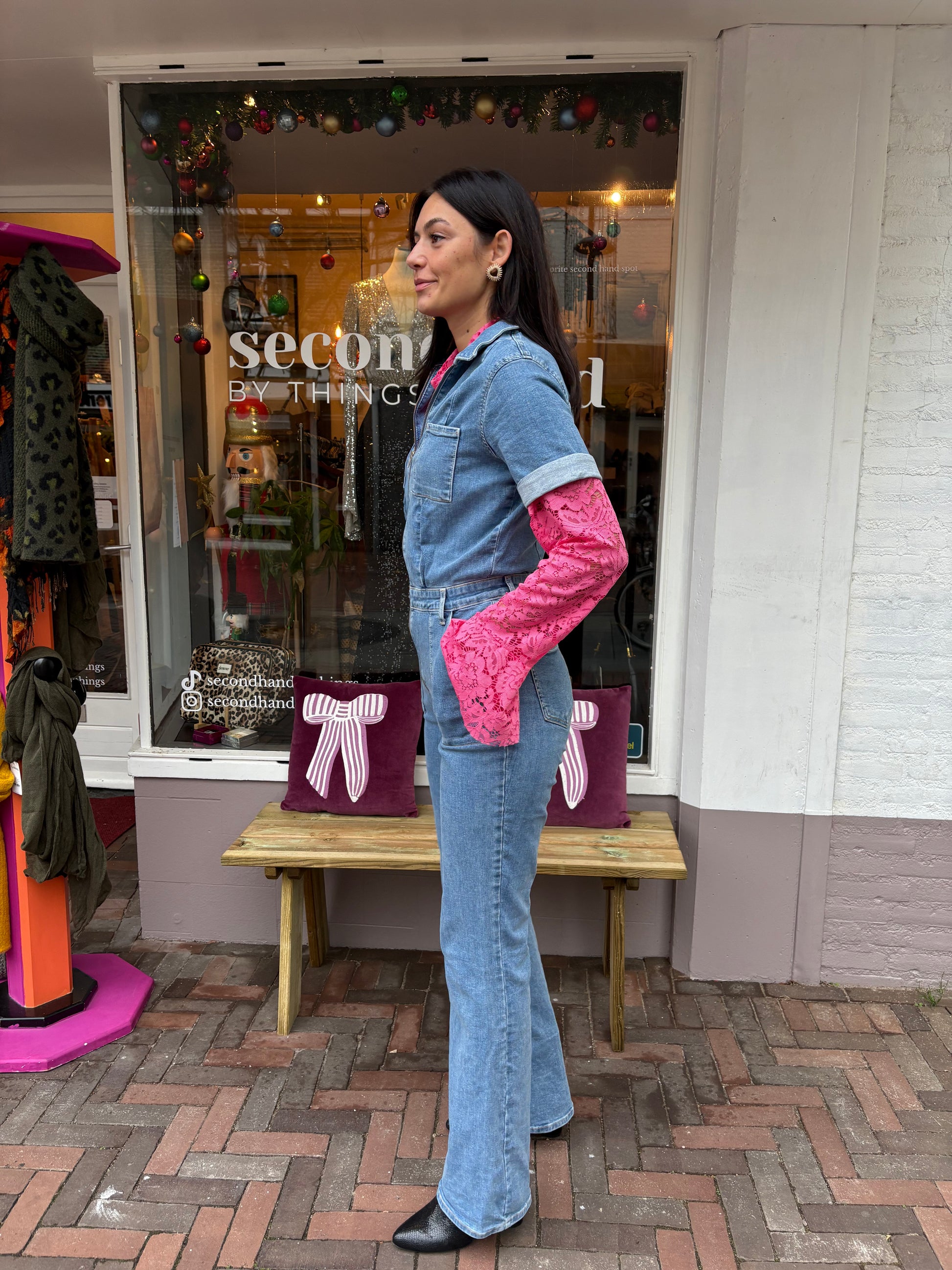 Dominique is 173cm tall and wears different sizes in the photos.