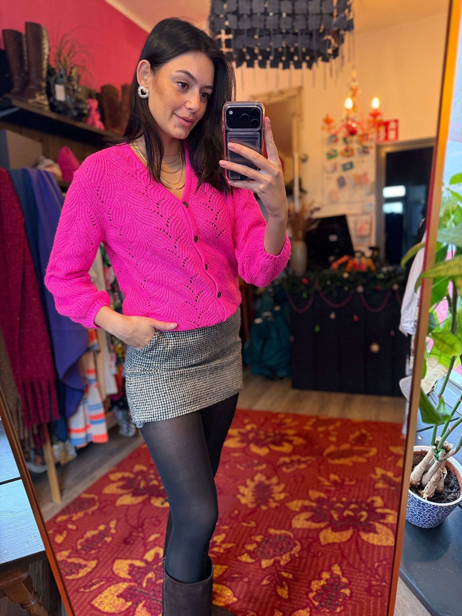 The size is clearly indicated on each product. This is the exact size as indicated on the label. To give the best possible impression of the fit, Dominique sometimes uses clips to adjust the clothing for the photos.