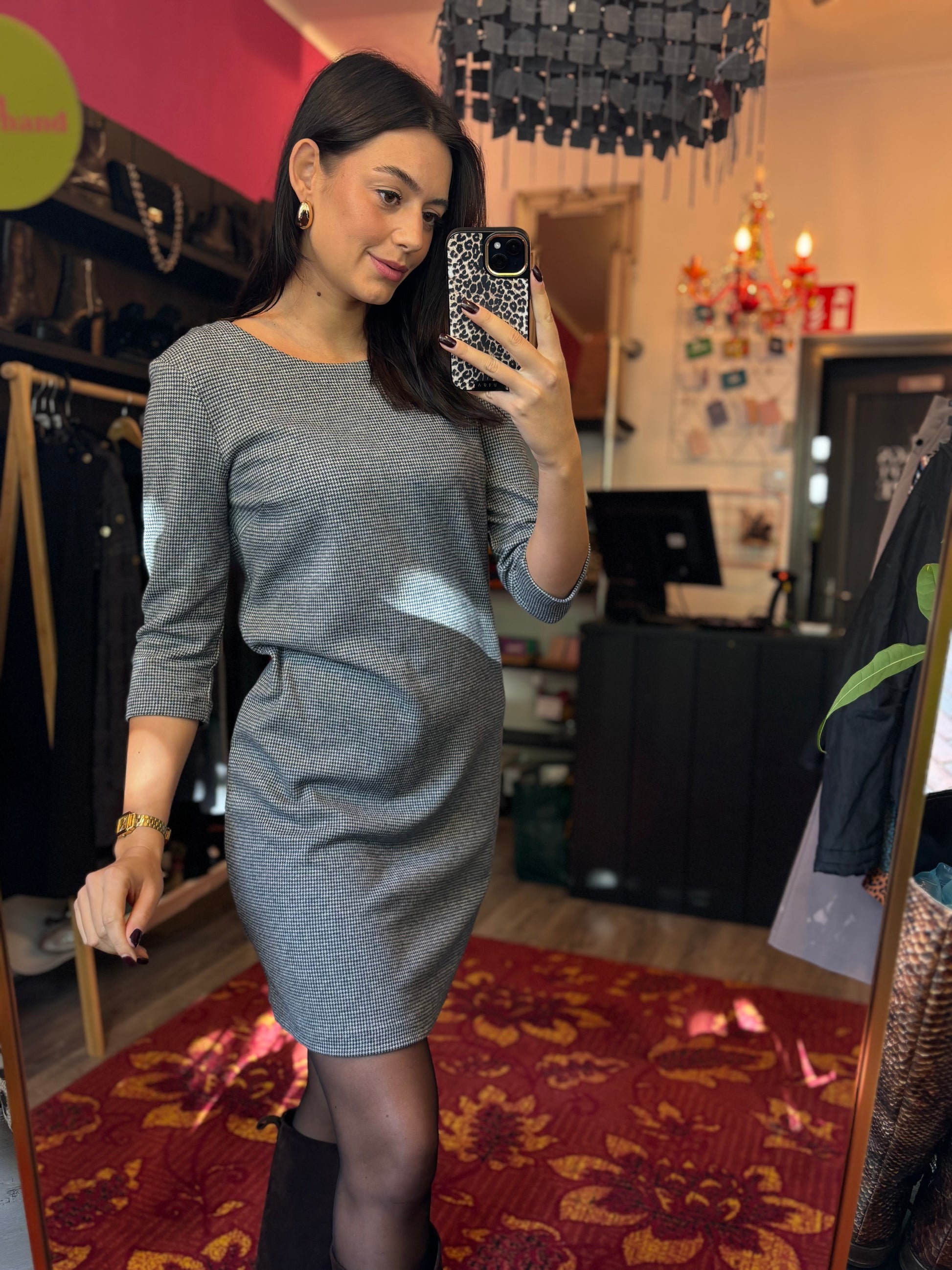 Bij elk product staat de maat duidelijk vermeld. Dit is de exacte maat zoals aangegeven op het label. Om een zo goed mogelijk beeld van de pasvorm te geven, gebruikt Dominique soms clips om de kleding mooi passend te maken voor de foto’s.