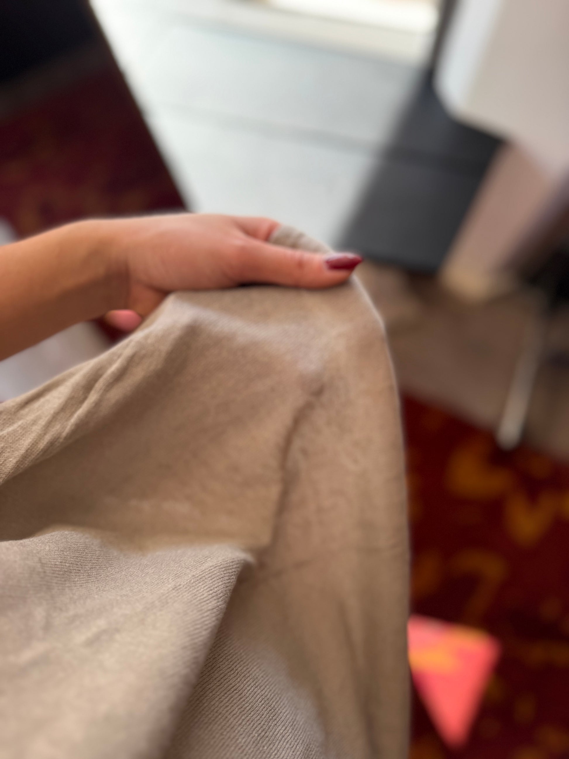 Bij elk product staat de maat duidelijk vermeld. Dit is de exacte maat zoals aangegeven op het label. Om een zo goed mogelijk beeld van de pasvorm te geven, gebruikt Dominique soms clips om de kleding mooi passend te maken voor de foto’s.