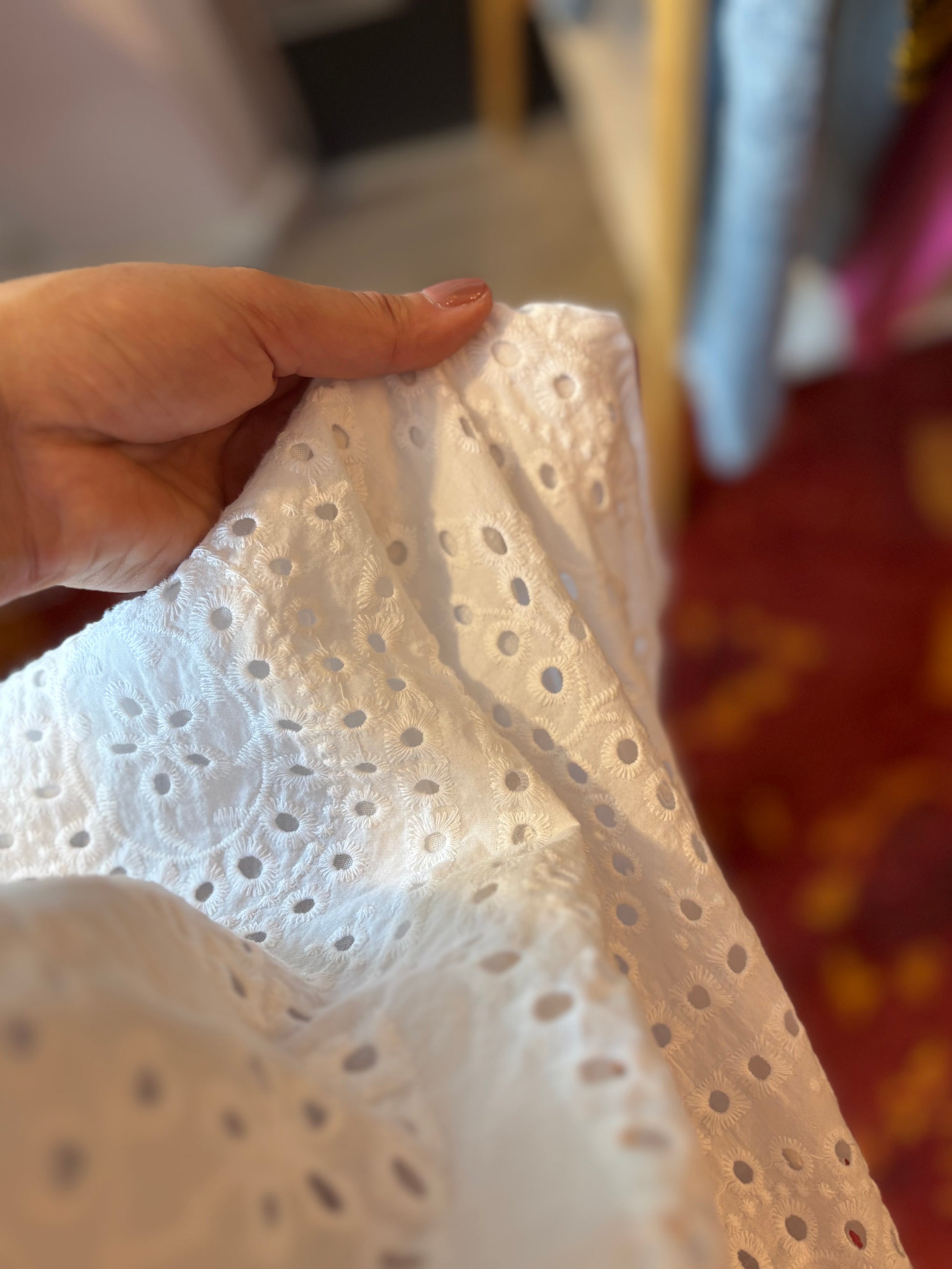 Bij elk product staat de maat duidelijk vermeld. Dit is de exacte maat zoals aangegeven op het label. Om een zo goed mogelijk beeld van de pasvorm te geven, gebruikt Dominique soms clips om de kleding mooi passend te maken voor de foto’s.