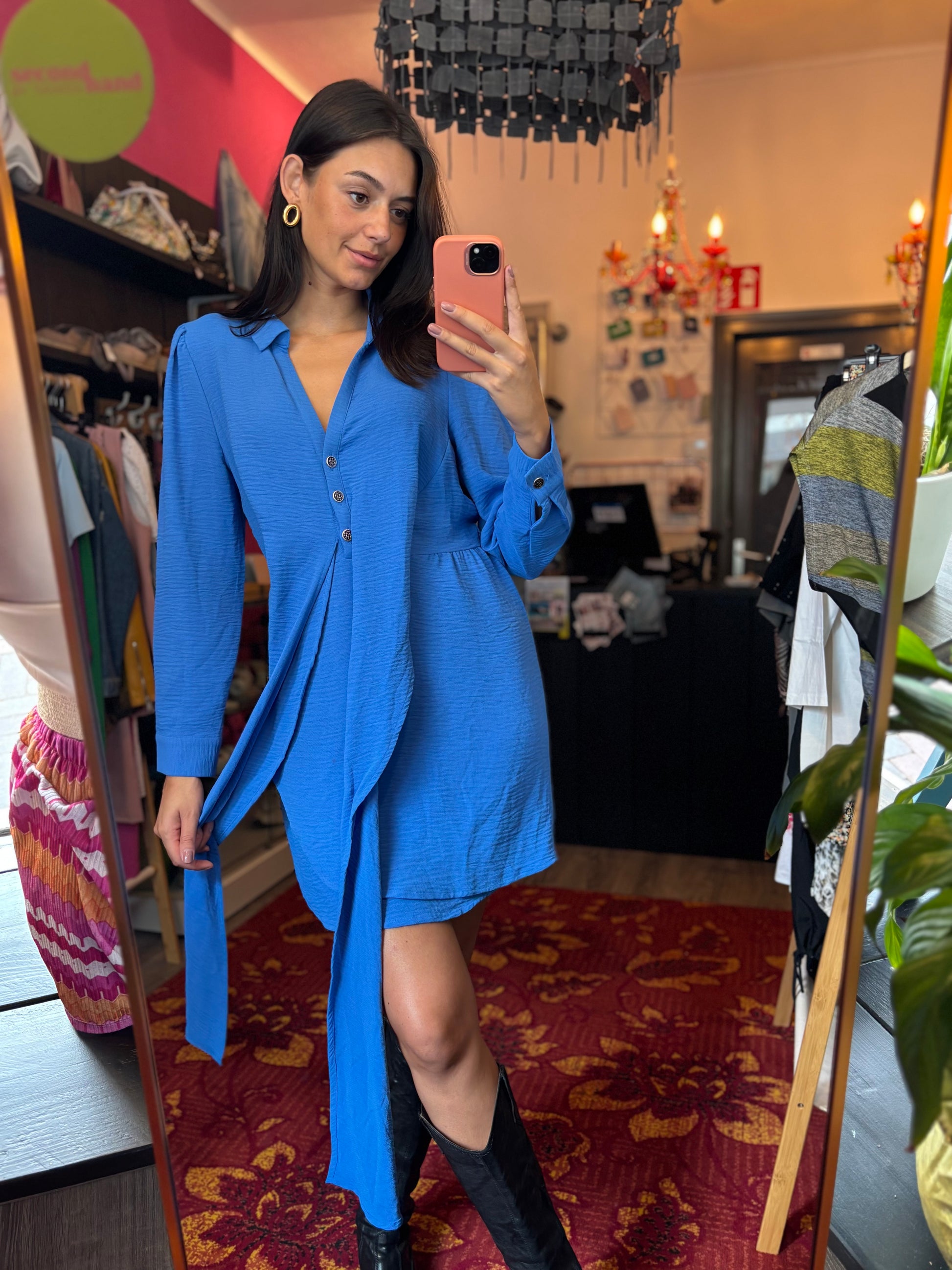 Bij elk product staat de maat duidelijk vermeld. Dit is de exacte maat zoals aangegeven op het label. Om een zo goed mogelijk beeld van de pasvorm te geven, gebruikt Dominique soms clips om de kleding mooi passend te maken voor de foto’s.