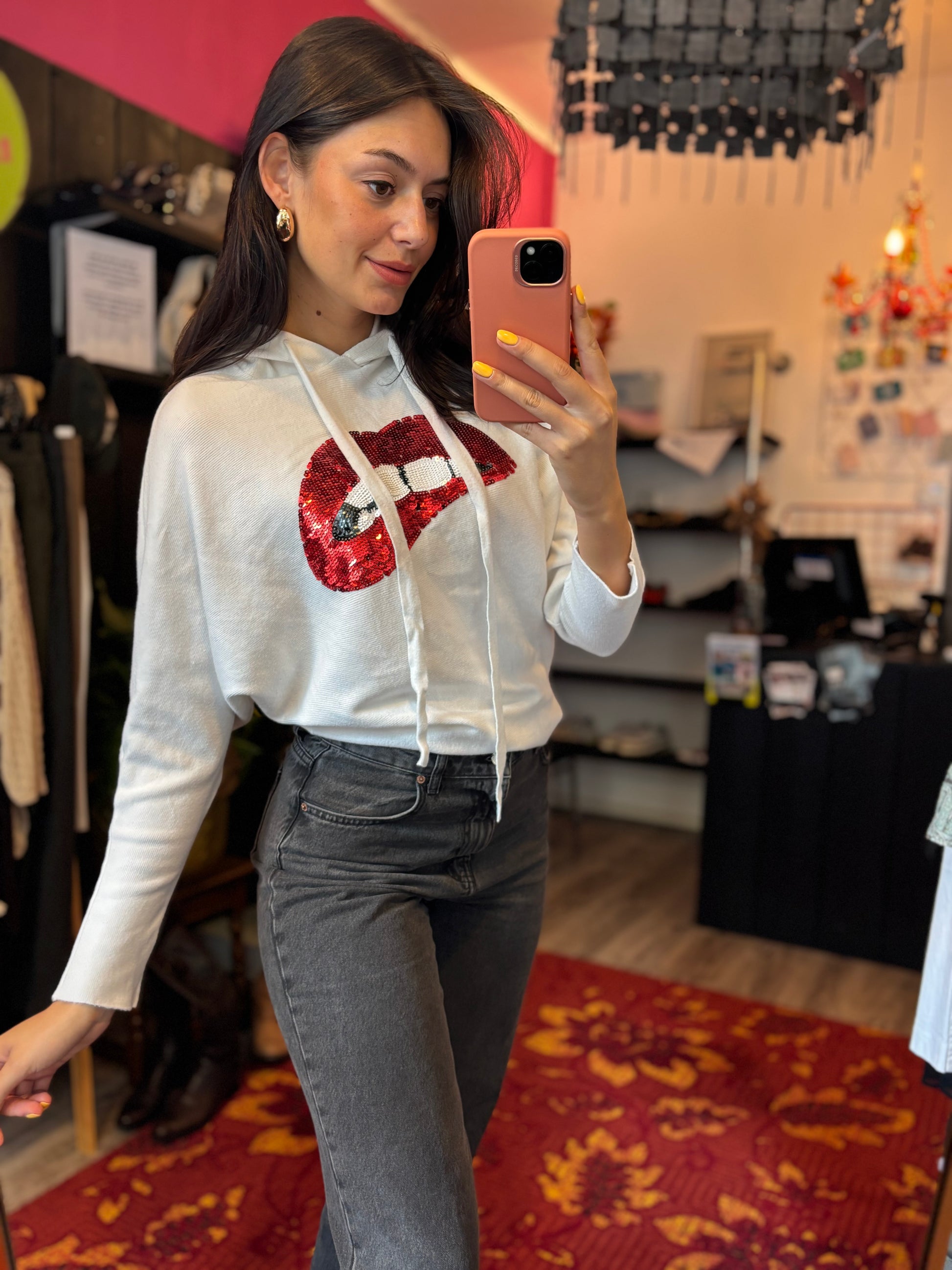 Dominique is 173 cm lang en draagt verschillende maten op de foto’s.
