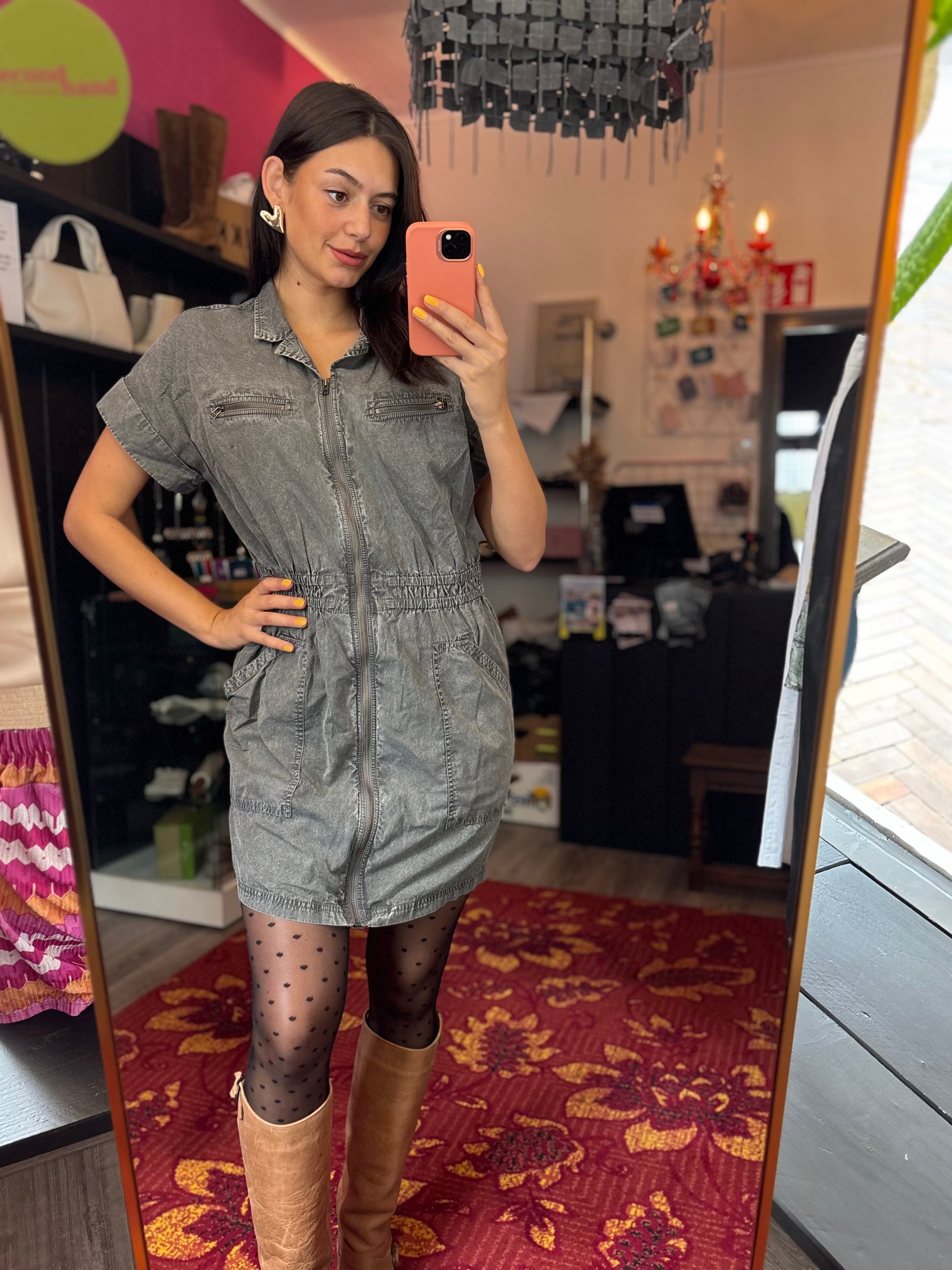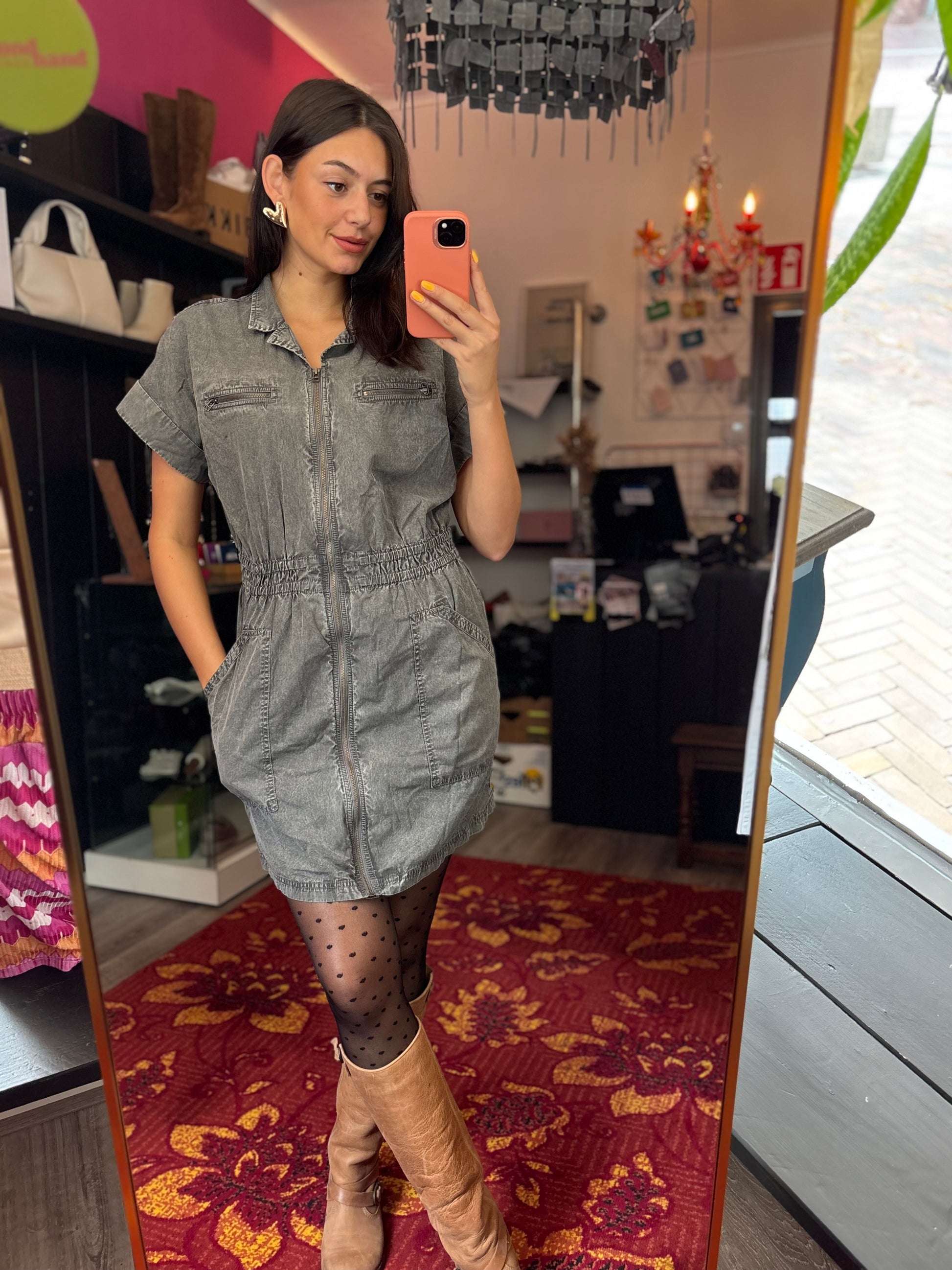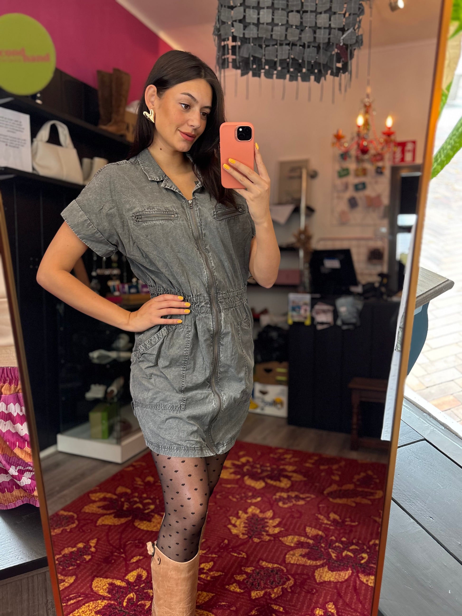 Dominique is 173 cm lang en draagt verschillende maten op de foto’s.