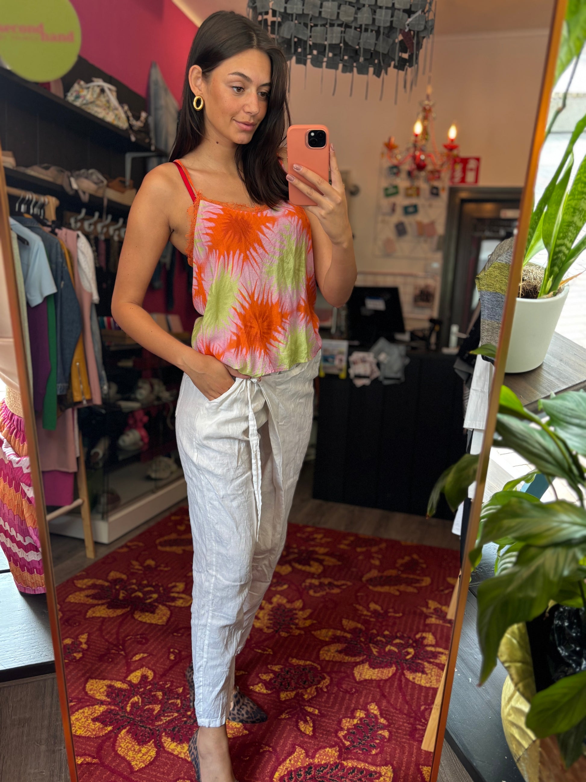 Bij elk product staat de maat duidelijk vermeld. Dit is de exacte maat zoals aangegeven op het label. Om een zo goed mogelijk beeld van de pasvorm te geven, gebruikt Dominique soms clips om de kleding mooi passend te maken voor de foto’s.