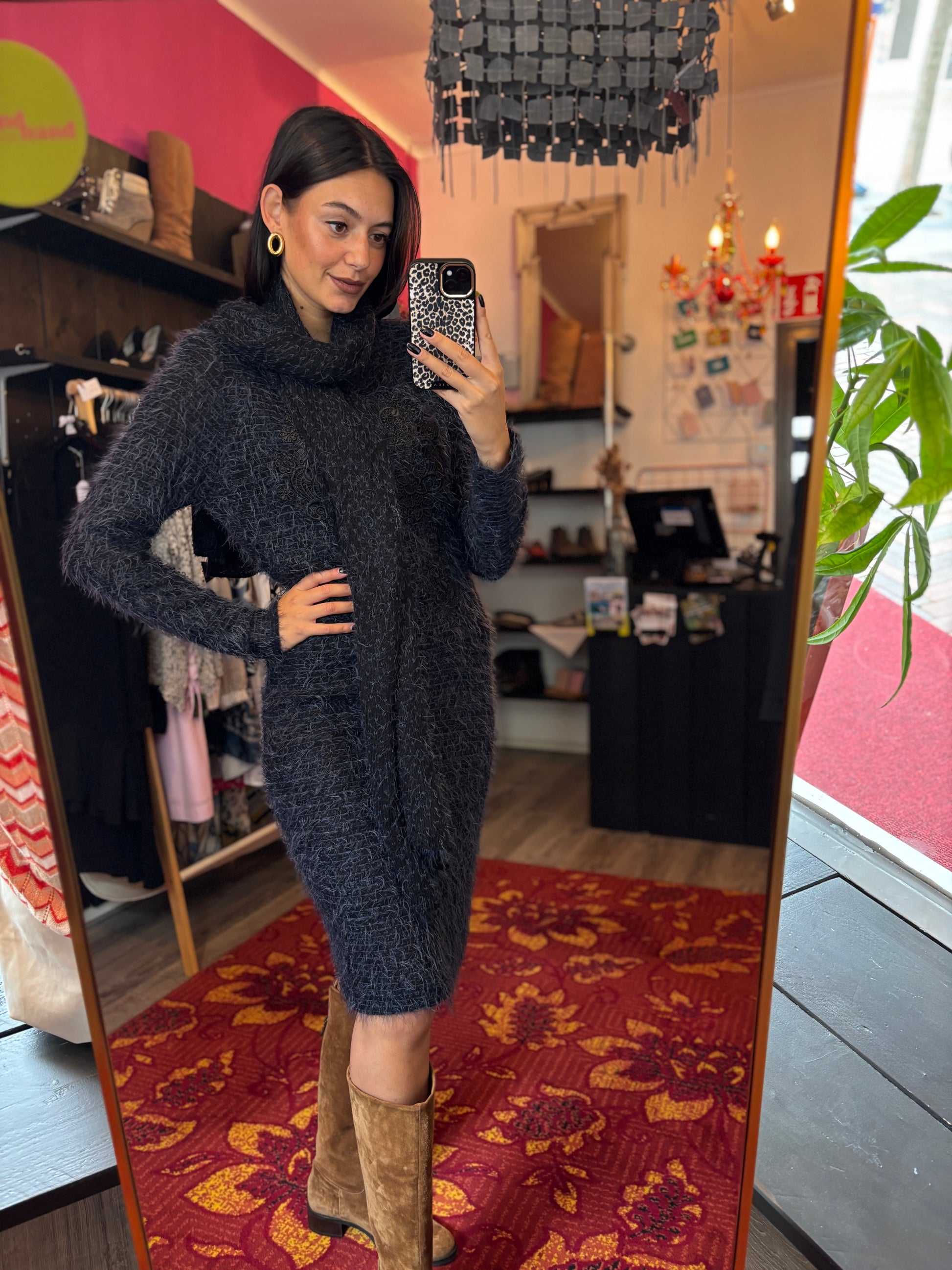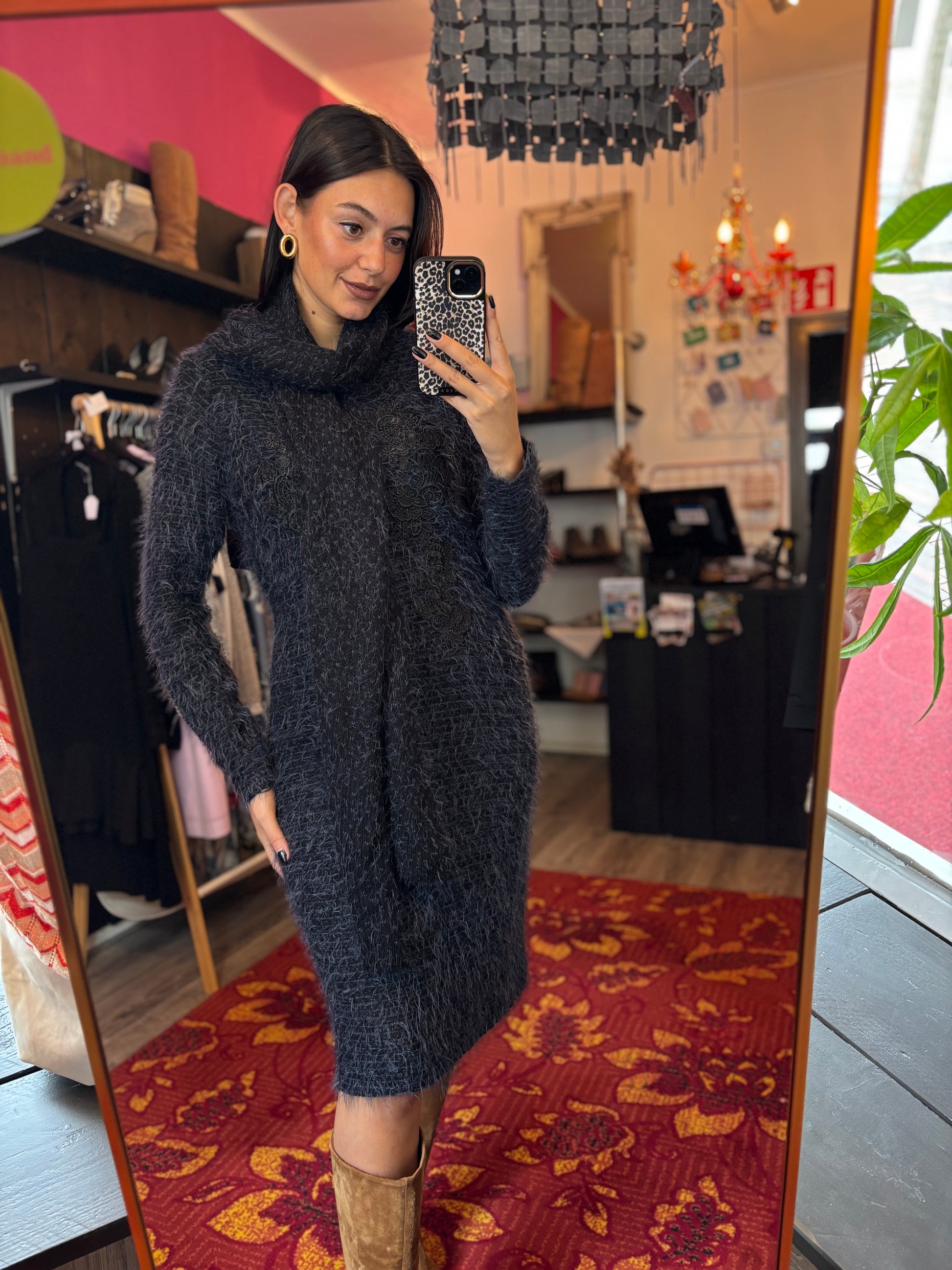 Dominique is 173 cm lang en draagt verschillende maten op de foto’s.