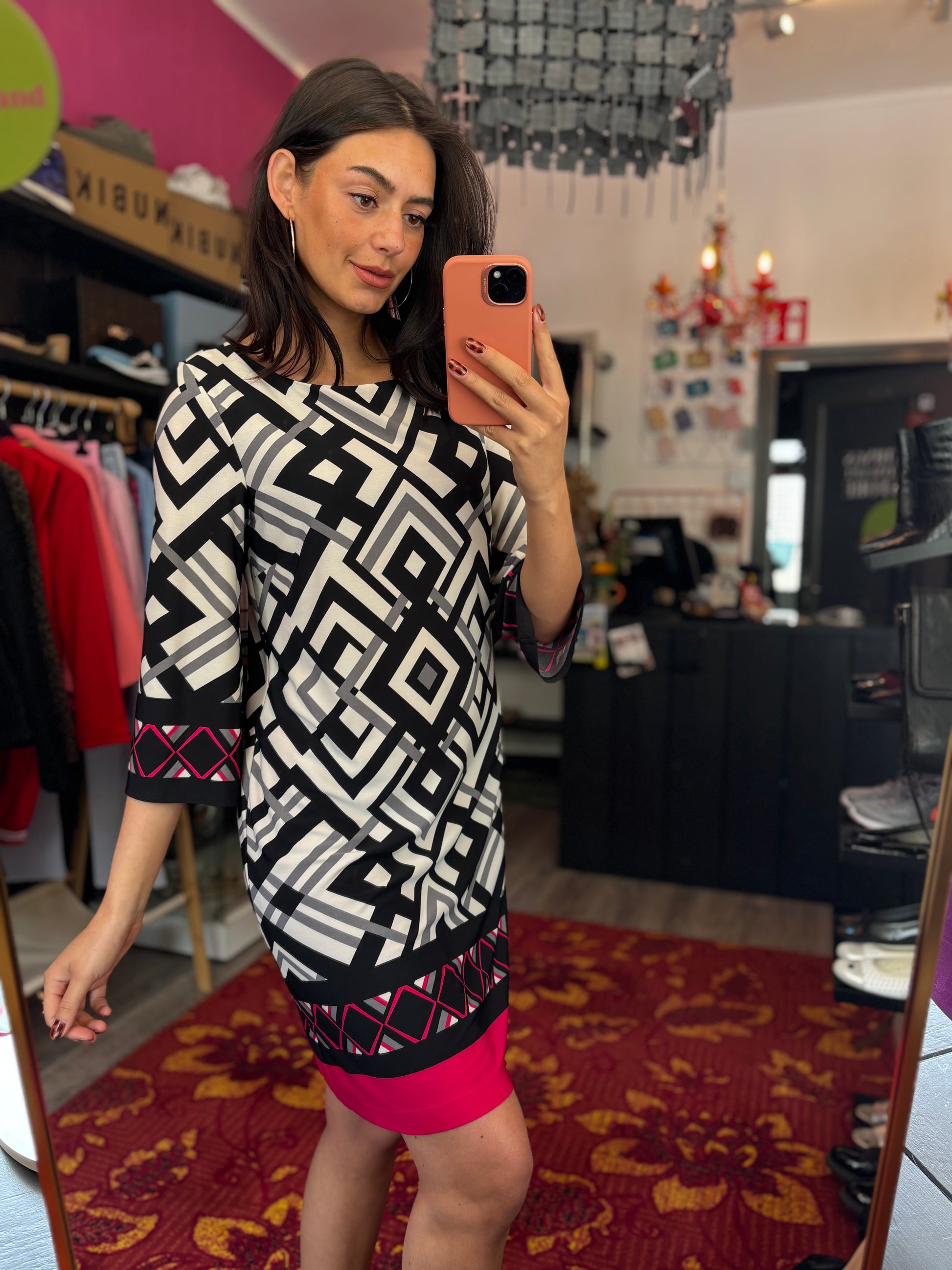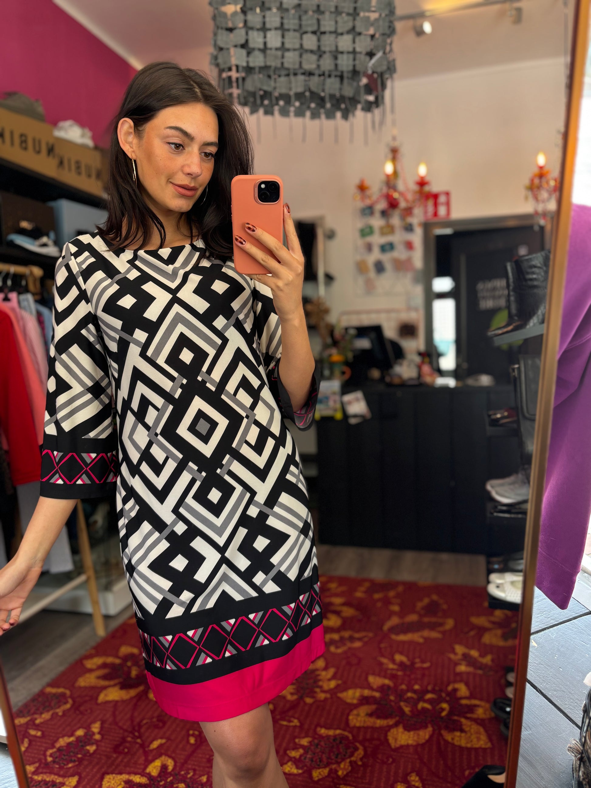 Bij elk product staat de maat duidelijk vermeld. Dit is de exacte maat zoals aangegeven op het label. Om een zo goed mogelijk beeld van de pasvorm te geven, gebruikt Dominique soms clips om de kleding mooi passend te maken voor de foto’s.
