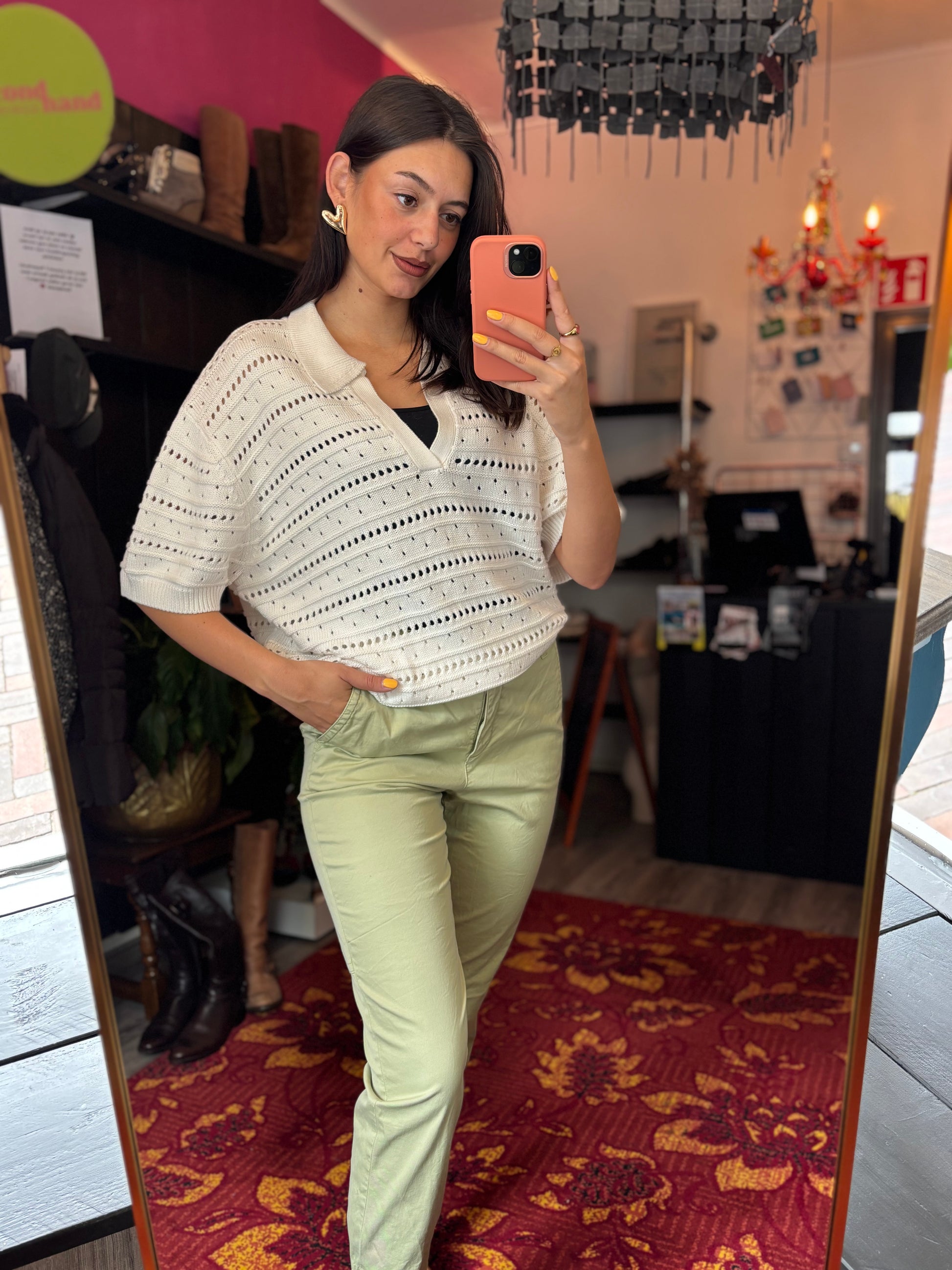 Bij elk product staat de maat duidelijk vermeld. Dit is de exacte maat zoals aangegeven op het label. Om een zo goed mogelijk beeld van de pasvorm te geven, gebruikt Dominique soms clips om de kleding mooi passend te maken voor de foto’s.