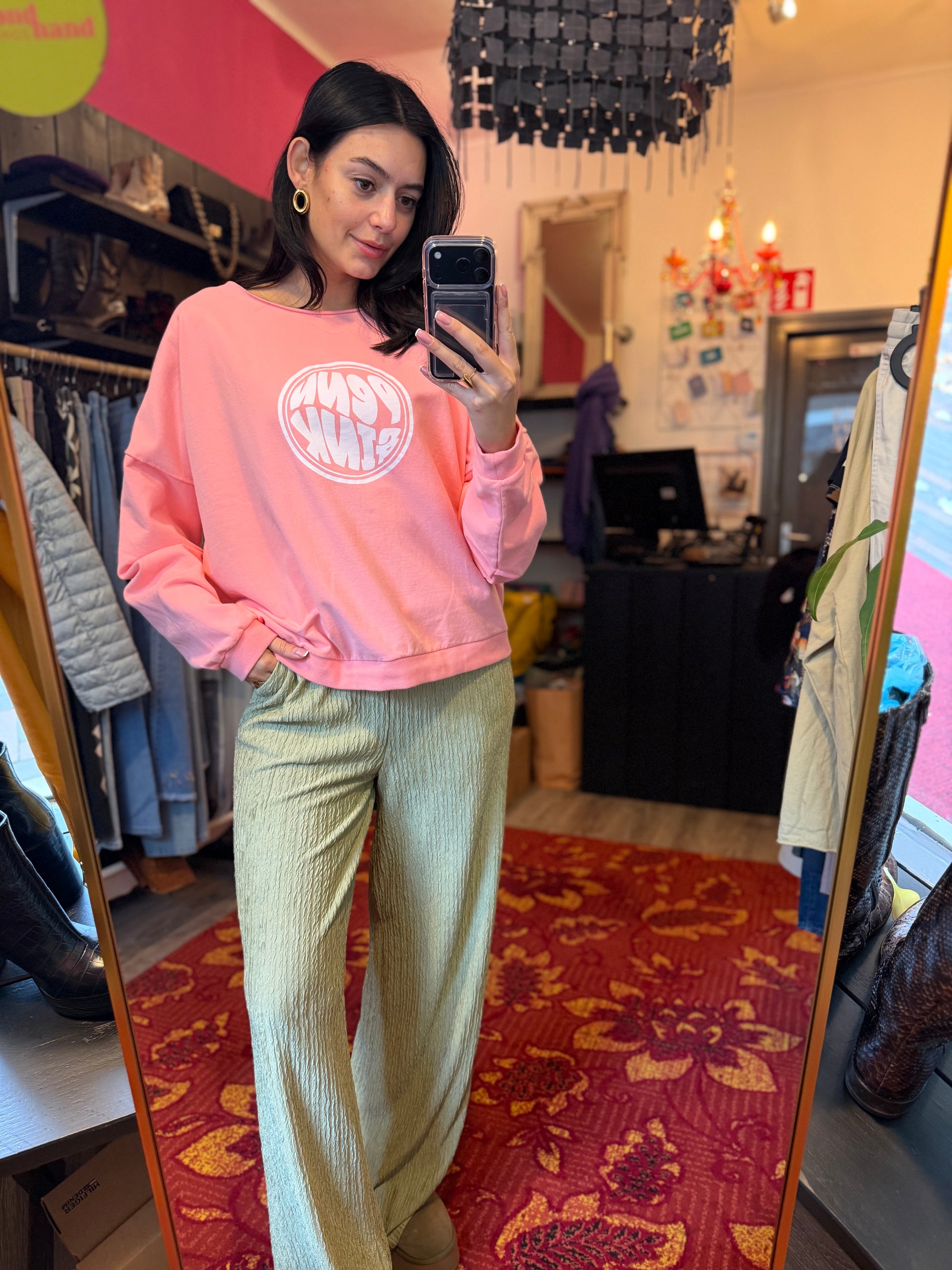 Bij elk product staat de maat duidelijk vermeld. Dit is de exacte maat zoals aangegeven op het label. Om een zo goed mogelijk beeld van de pasvorm te geven, gebruikt Dominique soms clips om de kleding mooi passend te maken voor de foto’s.