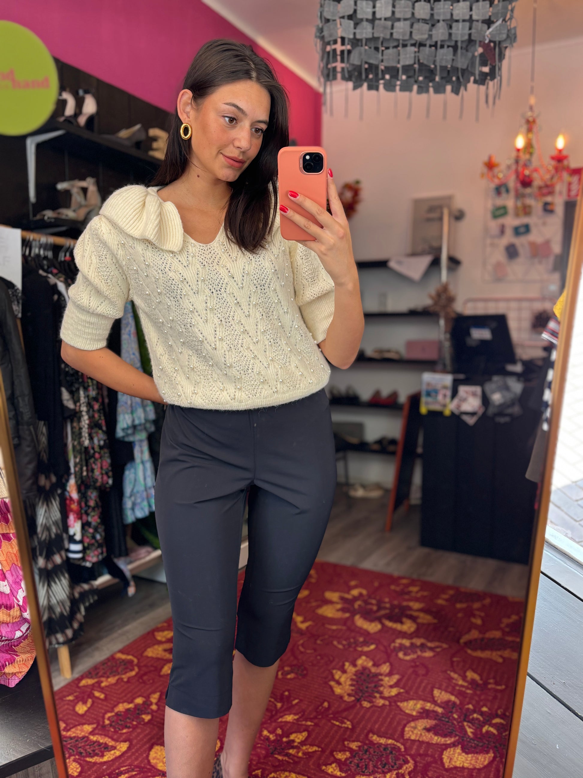 Bij elk product staat de maat duidelijk vermeld. Dit is de exacte maat zoals aangegeven op het label. Om een zo goed mogelijk beeld van de pasvorm te geven, gebruikt Dominique soms clips om de kleding mooi passend te maken voor de foto’s.