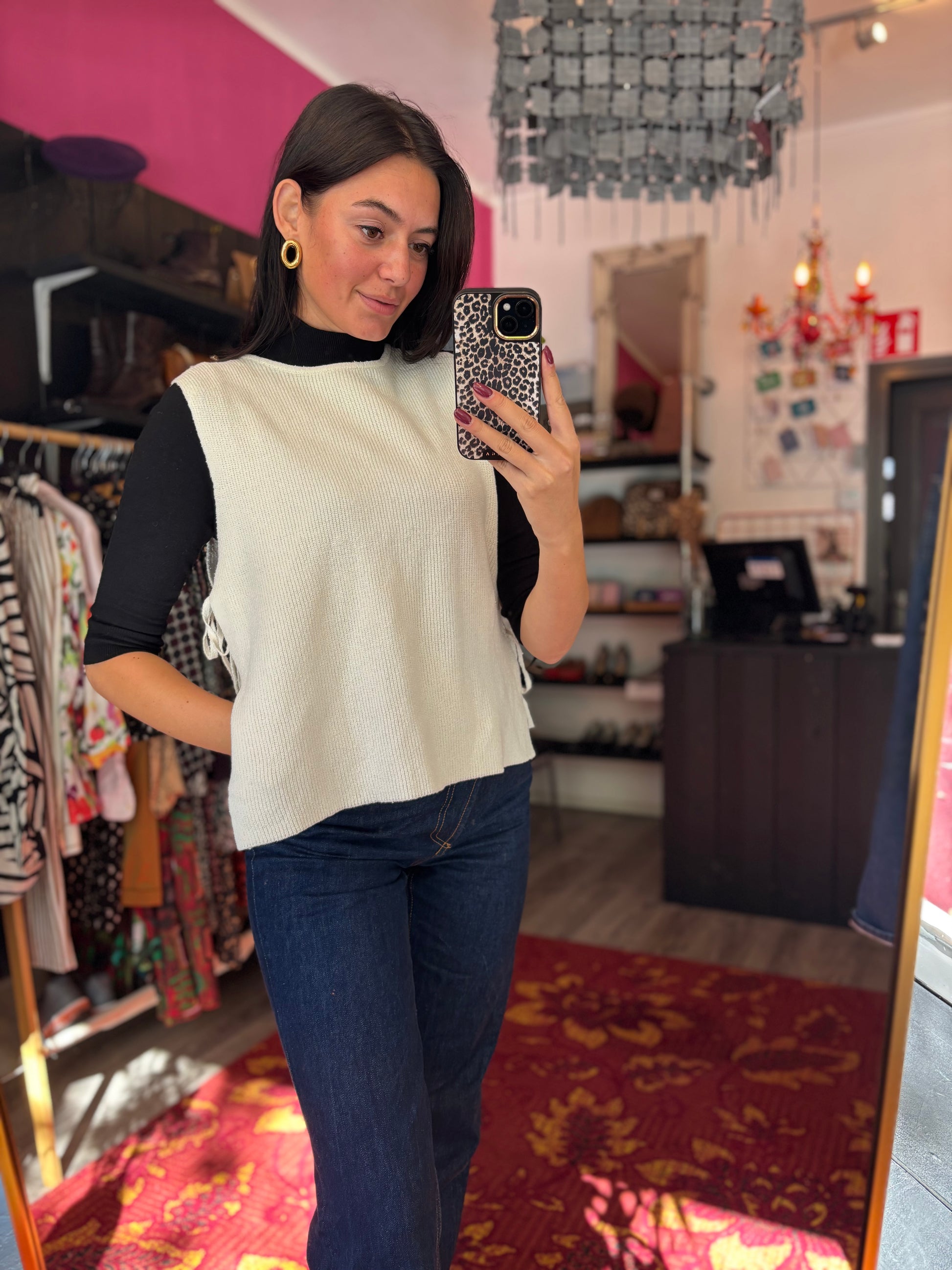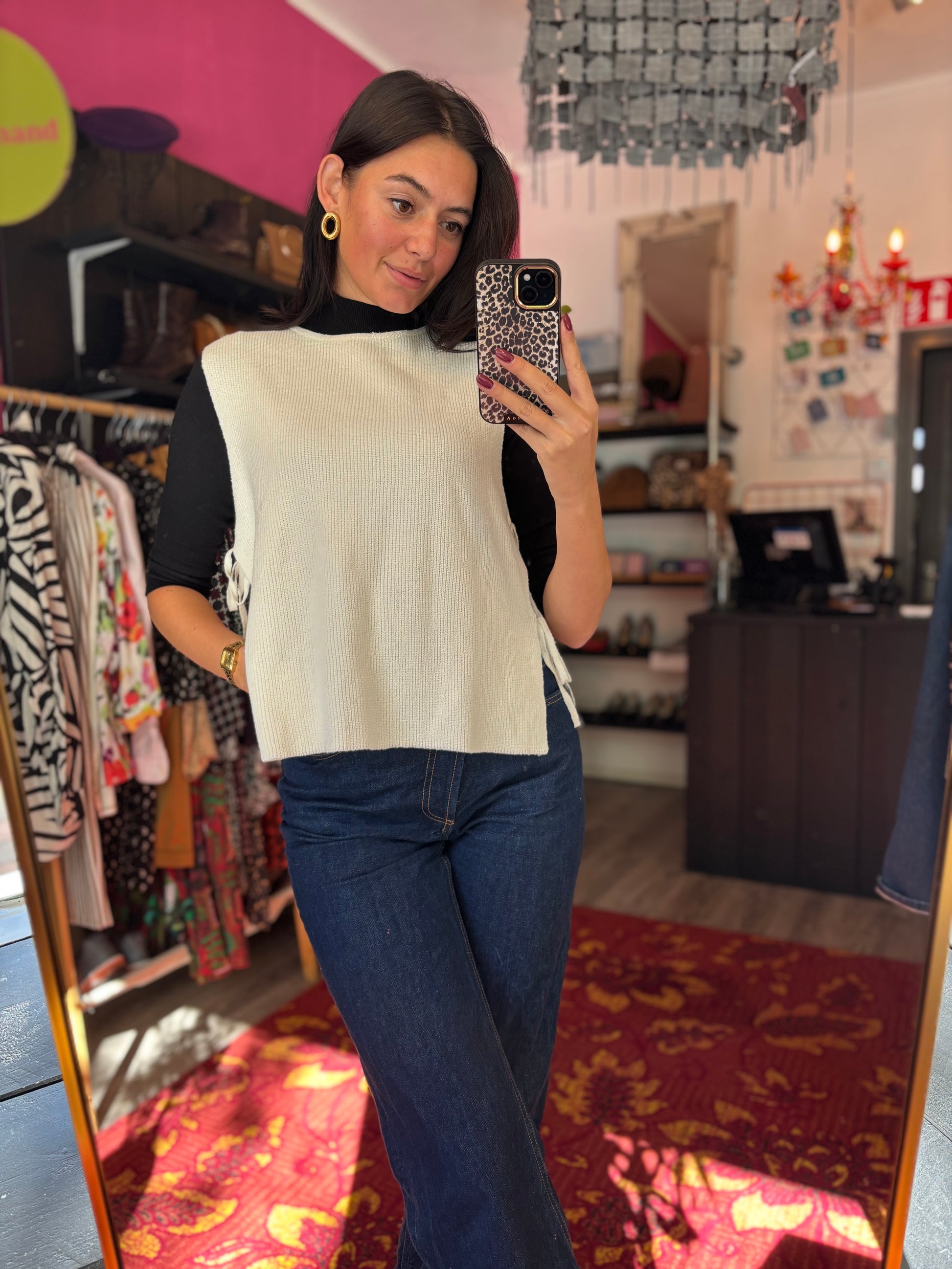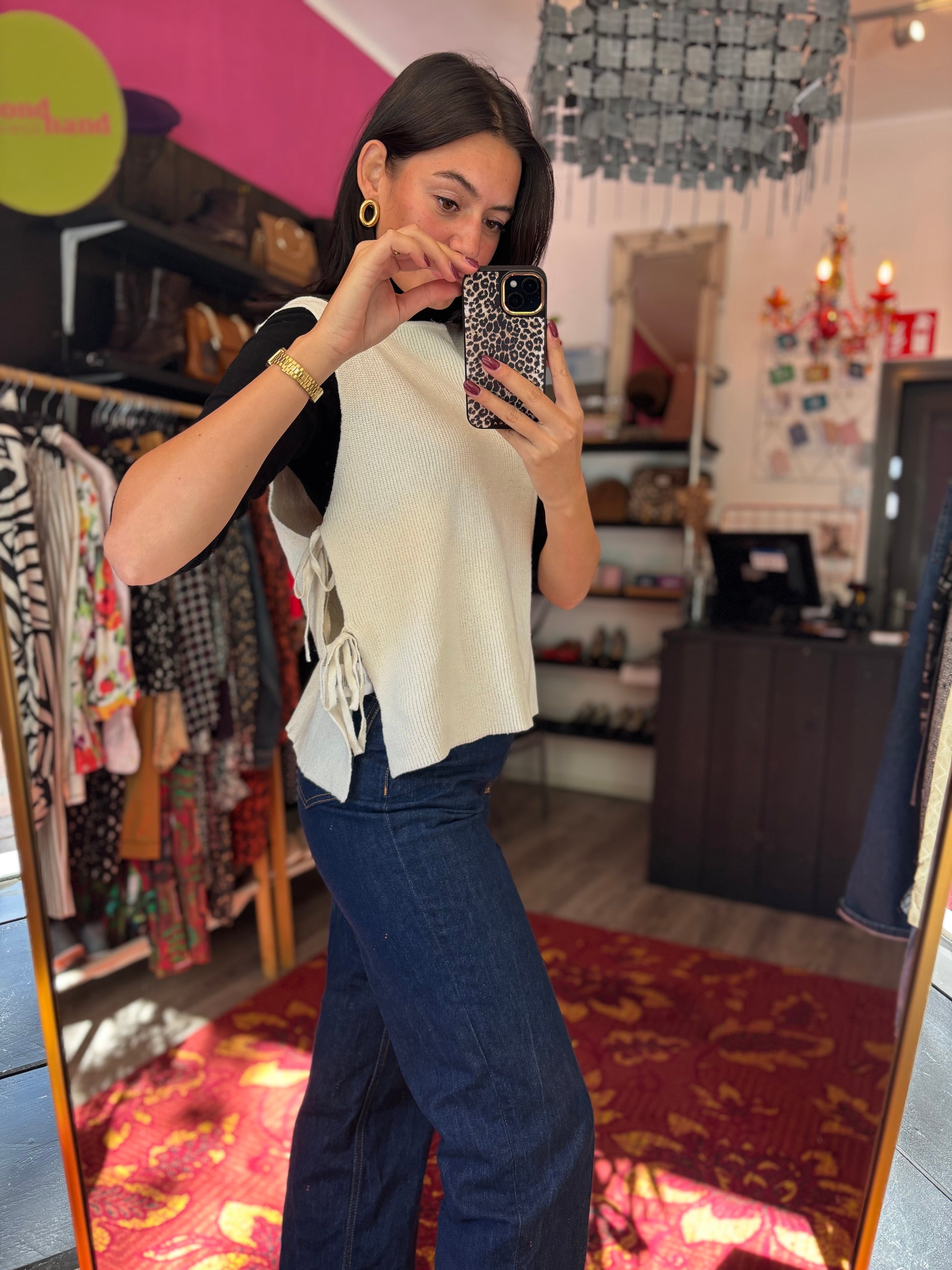 Bij elk product staat de maat duidelijk vermeld. Dit is de exacte maat zoals aangegeven op het label. Om een zo goed mogelijk beeld van de pasvorm te geven, gebruikt Dominique soms clips om de kleding mooi passend te maken voor de foto’s.