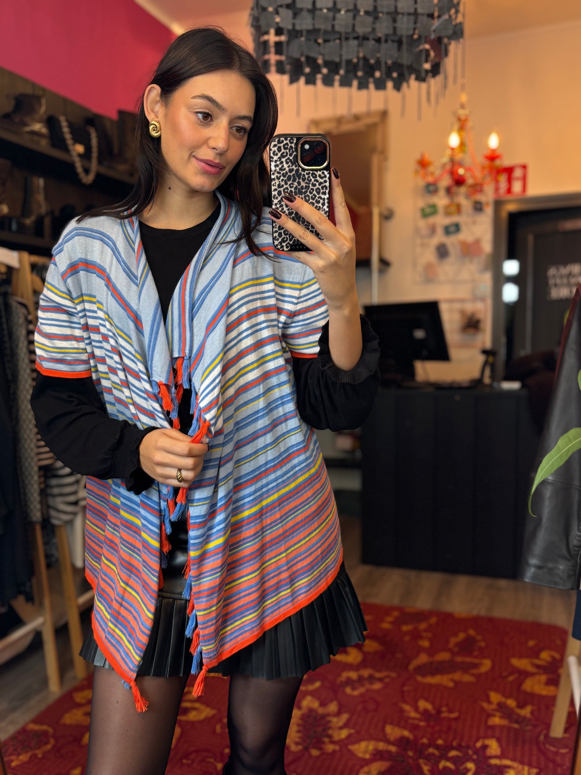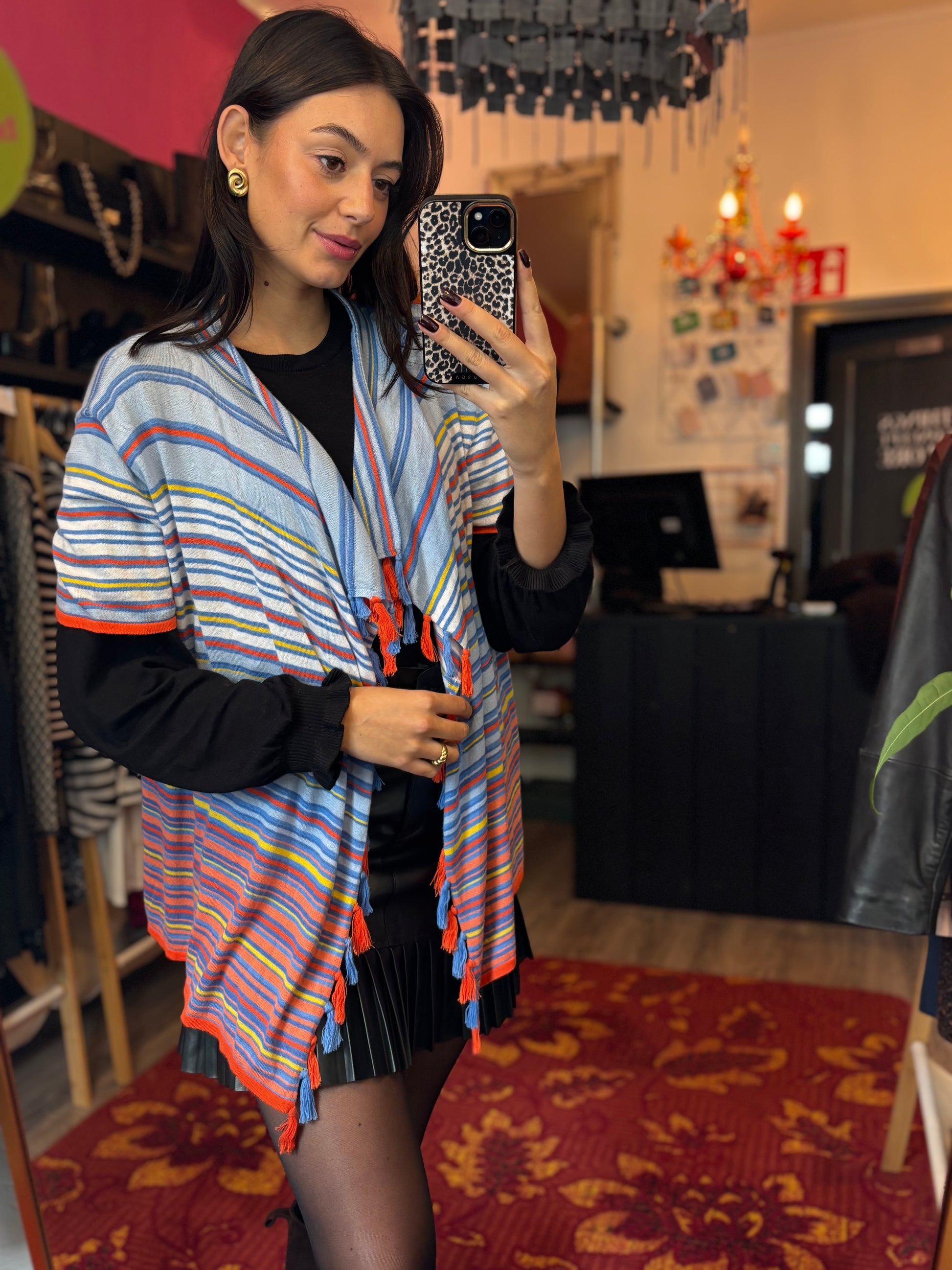 Dominique is 173 cm lang en draagt verschillende maten op de foto’s.