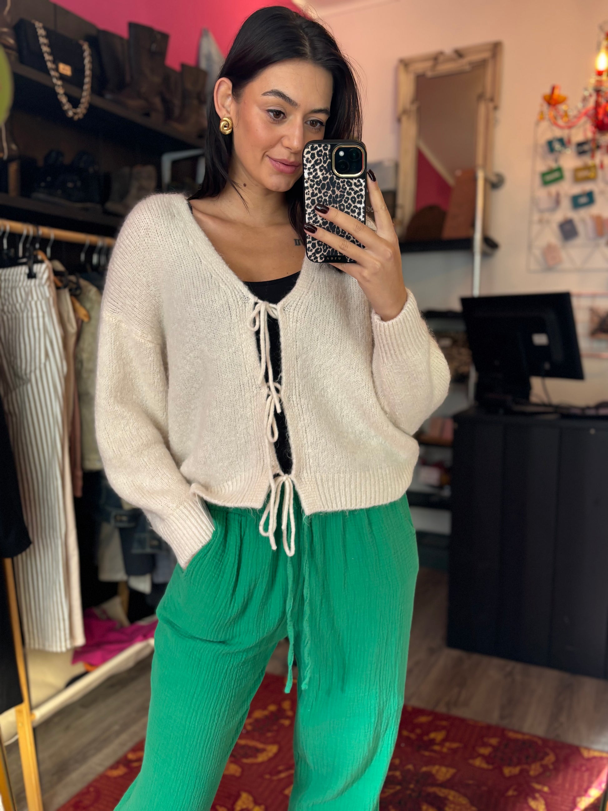 Bij elk product staat de maat duidelijk vermeld. Dit is de exacte maat zoals aangegeven op het label. Om een zo goed mogelijk beeld van de pasvorm te geven, gebruikt Dominique soms clips om de kleding mooi passend te maken voor de foto’s.